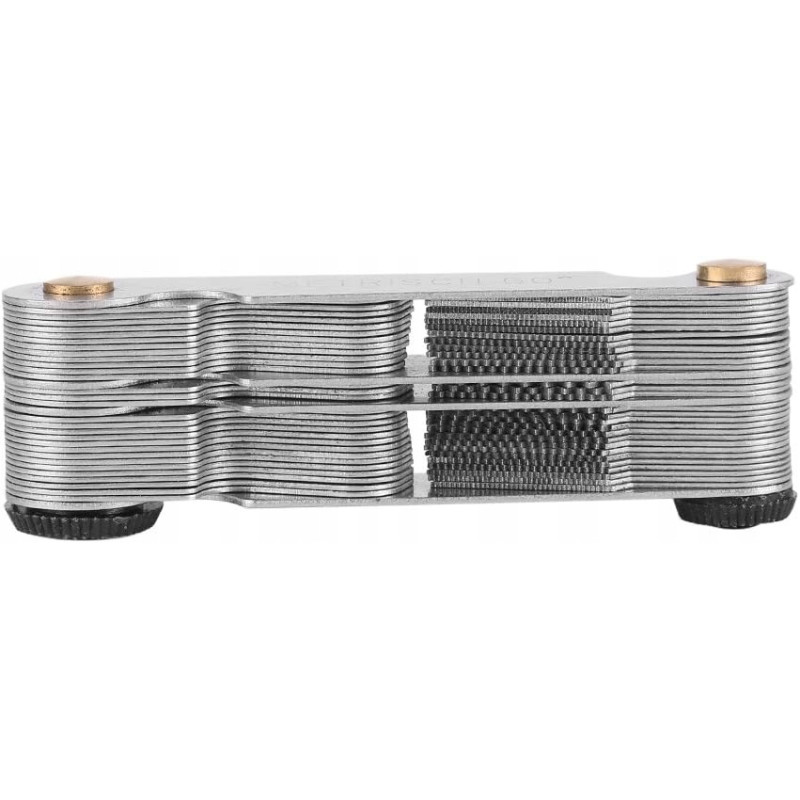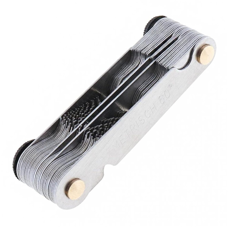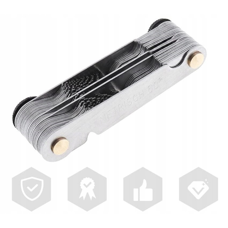- Precyzyjne Ostrza: 58 ostrzy wykonanych ze stali nierdzewnej zapewnia dokładne pomiary zarówno wewnętrznych, jak i zewnętrznych gwintów.