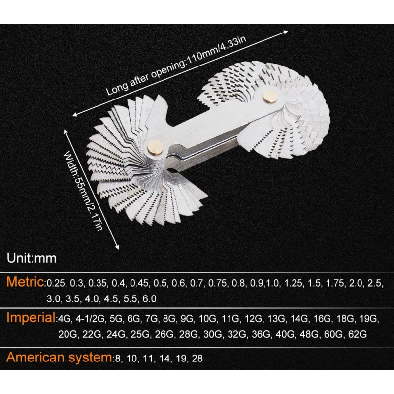 Miernik Gwintów Metric & Imperial & US Screw Gauge