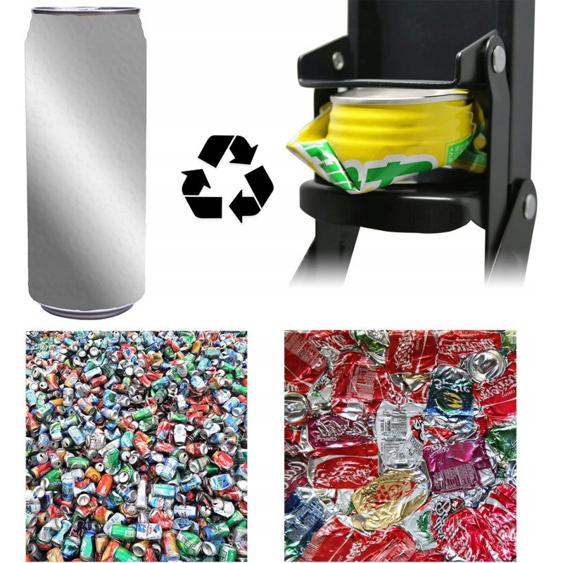 - Oszczędność Miejsca: Kompresuje puszki i butelki, co pozwala zaoszczędzić miejsce w koszach na śmieci.