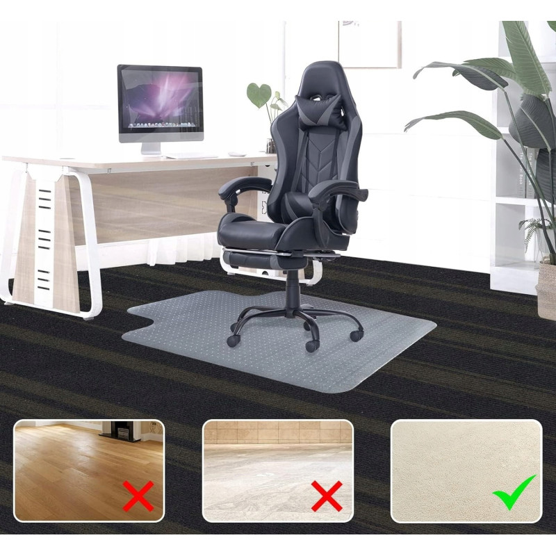 - Rozmiar: 48" x 36" (120 cm x 90 cm) - doskonały do większych krzeseł biurowych lub gamingowych, zapewniający wystarczająco dużo miejsca na swobodne poruszanie się.