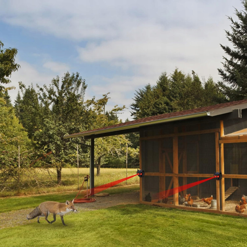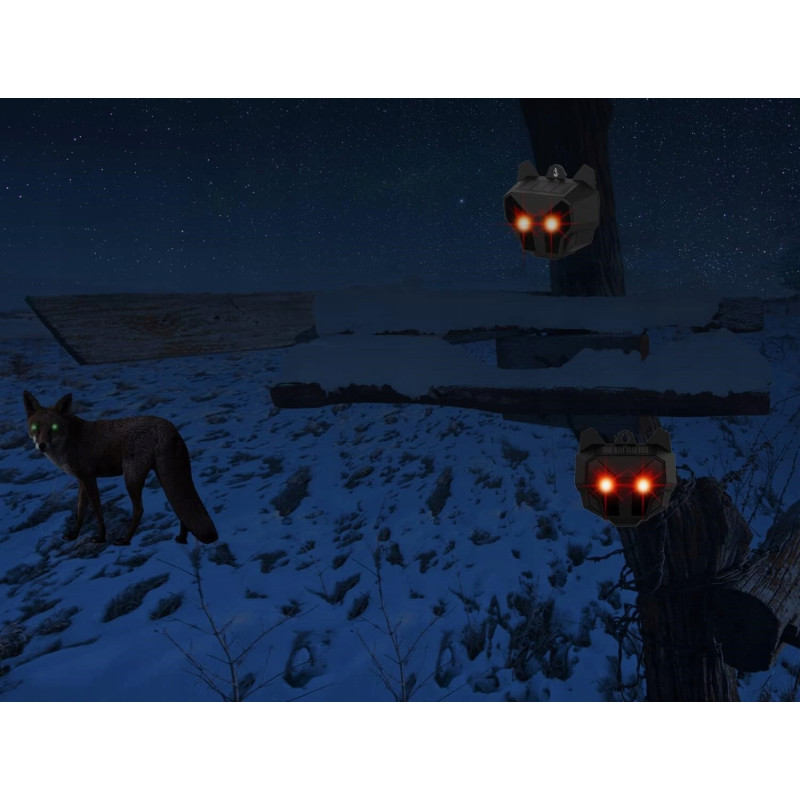 Zadbaj o bezpieczeństwo swojego ogrodu, farmy, kurnika oraz innych miejsc narażonych na wtargnięcia dzikich zwierząt dzięki nowoczesnemu zestawowi odstraszaczy zwierząt. Nasz zestaw to doskonałe rozwiązanie na problem nieproszonych gości, takich jak lisy, szopy, jelenie, skunksy, ptaki i inne szkodniki. Dzięki technologii opartej na czerwonych migających światłach, które naśladują oczy drapieżników, urządzenie skutecznie odstrasza zwierzęta bez konieczności stosowania chemikaliów czy trucizn.