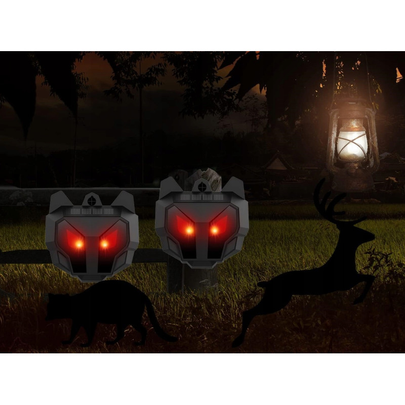 - Efektywne odstraszanie: Czerwone migające światła imitują oczy drapieżników, co powoduje panikę u dzikich zwierząt i zmusza je do ucieczki z chronionego terenu.