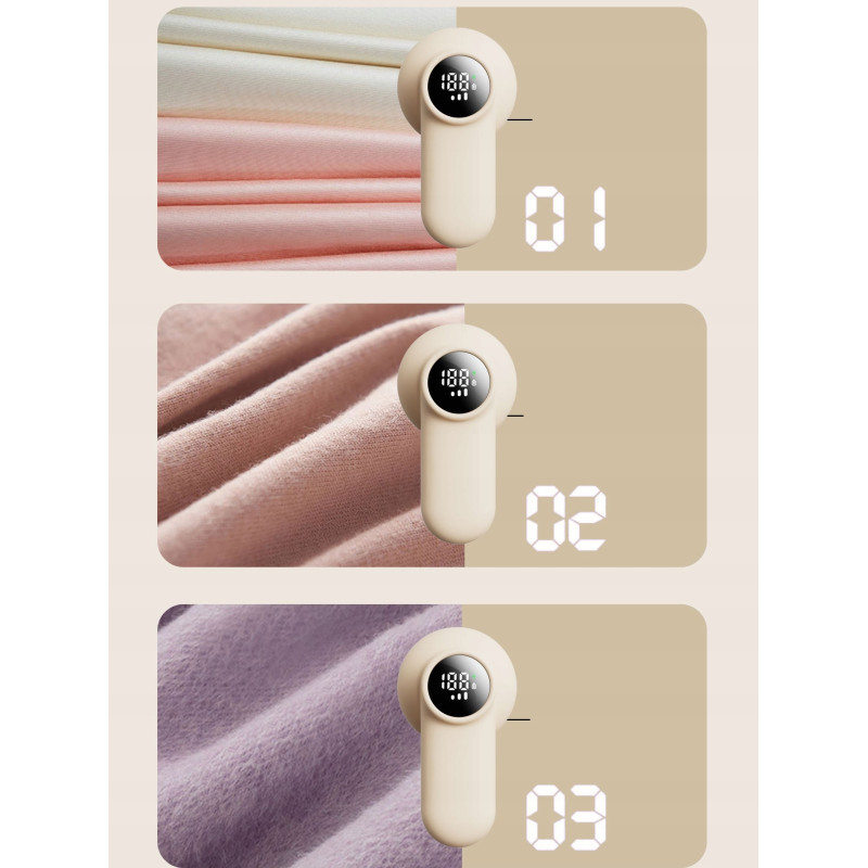 - Bezprzewodowe Użytkowanie: Golarka wyposażona jest w wydajny akumulator, który umożliwia bezprzewodowe korzystanie z urządzenia. Dzięki temu możesz swobodnie poruszać się podczas usuwania zmechaceń, bez ograniczeń związanych z kablem. Wbudowany wyświetlacz LED pokazuje poziom naładowania baterii oraz wybrany tryb pracy (I/II/III), co pozwala na łatwe monitorowanie stanu urządzenia i dostosowanie jego działania do potrzeb. Bezprzewodowe użytkowanie jest idealne do szybkiego i wygodnego czyszczenia ubrań, tapicerki czy koców w dowolnym miejscu w domu.