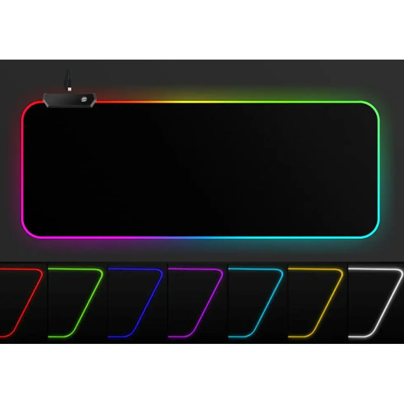 - 11 Trybów Oświetlenia RGB: Podkładka oferuje 11 różnych trybów podświetlenia, w tym 7 statycznych kolorów (czerwony, żółty, zielony, niebieski, fioletowy, biały, różowy) oraz 4 tryby dynamiczne.