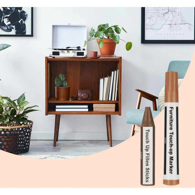 Dzięki naszemu zaawansowanemu zestawowi do naprawy mebli, naprawa zarysowań i ubytków w drewnianych powierzchniach jest teraz prostsza niż kiedykolwiek. Niezależnie od tego, czy chcesz odświeżyć wygląd swojego salonu, naprawić uszkodzone drzwi czy przywrócić świetność starym meblom, ten zestaw jest idealnym rozwiązaniem dla Ciebie. W zestawie znajdziesz 8 markerów w różnych kolorach, 8 woskowych wypełniaczy oraz temperówkę, które razem umożliwiają kompleksową naprawę i przywrócenie naturalnego wyglądu drewnianych powierzchni.