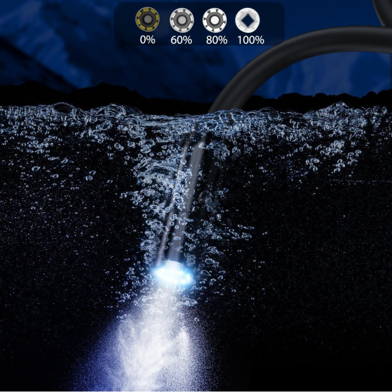 Może działać pod wodą. Kamery zanurzona w wodzie, emituje intensywne, regulowane światło LED, zapewniające widoczność w trudnych warunkach.