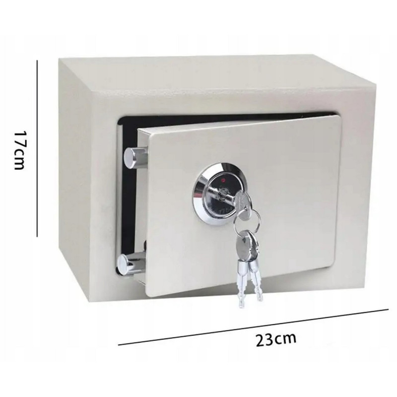 Sejf domowy na klucz to idealne rozwiązanie nie tylko dla domu, ale również dla biur, hoteli, sklepów i innych miejsc, gdzie konieczne jest przechowywanie wartościowych przedmiotów. Dzięki kompaktowym wymiarom (23 x 17 x 17 cm) sejf z łatwością zmieści się w dowolnym miejscu, nie rzucając się w oczy, a jednocześnie oferując przestrzeń wystarczającą do przechowywania dokumentów, gotówki, biżuterii, nośników danych i innych cennych przedmiotów.