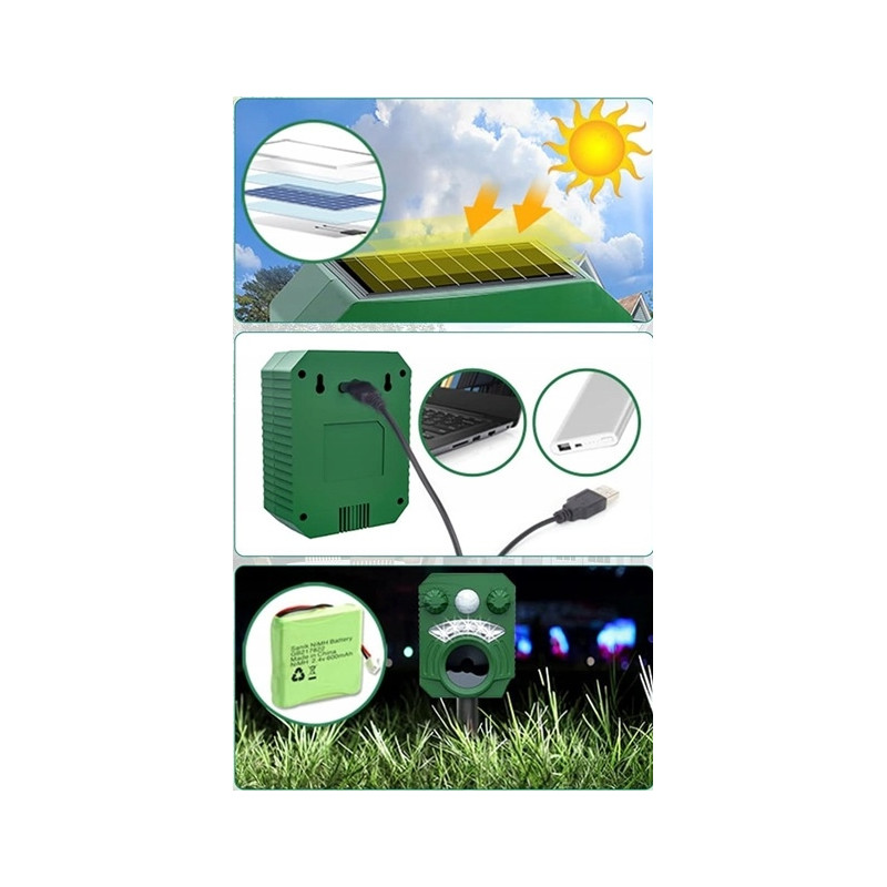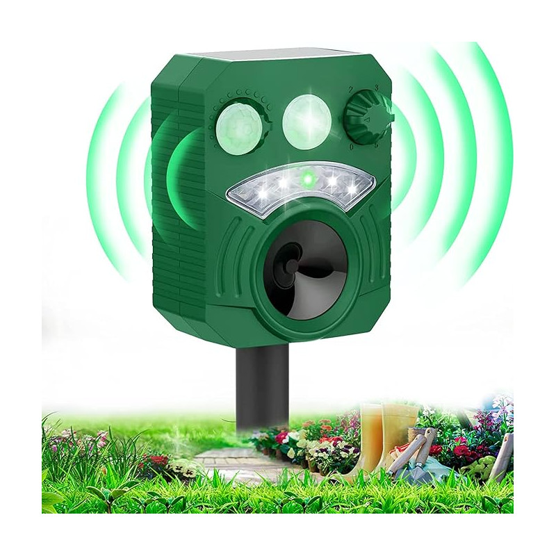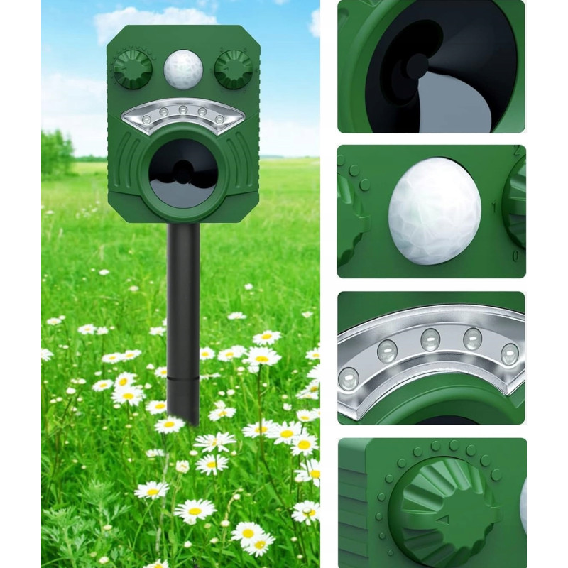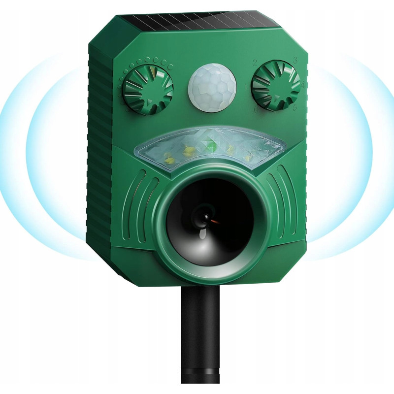 Zadbaj o swoje podwórko, ogród lub farmę z naszym ultradźwiękowym odstraszaczem dzikich zwierząt. Wyposażony w zaawansowany czujnik PIR i mocny głośnik ultradźwiękowy, ten odstraszacz skutecznie odstrasza koty, psy, szopy praczy, kuny, lisy i wiele innych niepożądanych zwierząt. Dzięki zasilaniu energią słoneczną oraz opcjonalnemu ładowaniu przez USB, urządzenie działa niezawodnie nawet podczas długich deszczowych dni. Wodoodporna konstrukcja IP44 oraz możliwość regulacji trybów sprawiają, że ten odstraszacz jest idealnym wyborem dla każdego, kto chce chronić swoją przestrzeń w sposób bezpieczny i przyjazny dla środowiska.