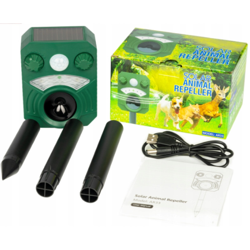 - Typ urządzenia: Solarny ultradźwiękowy odstraszacz zwierząt