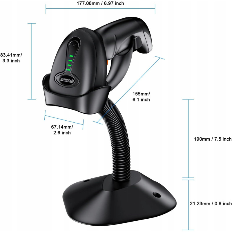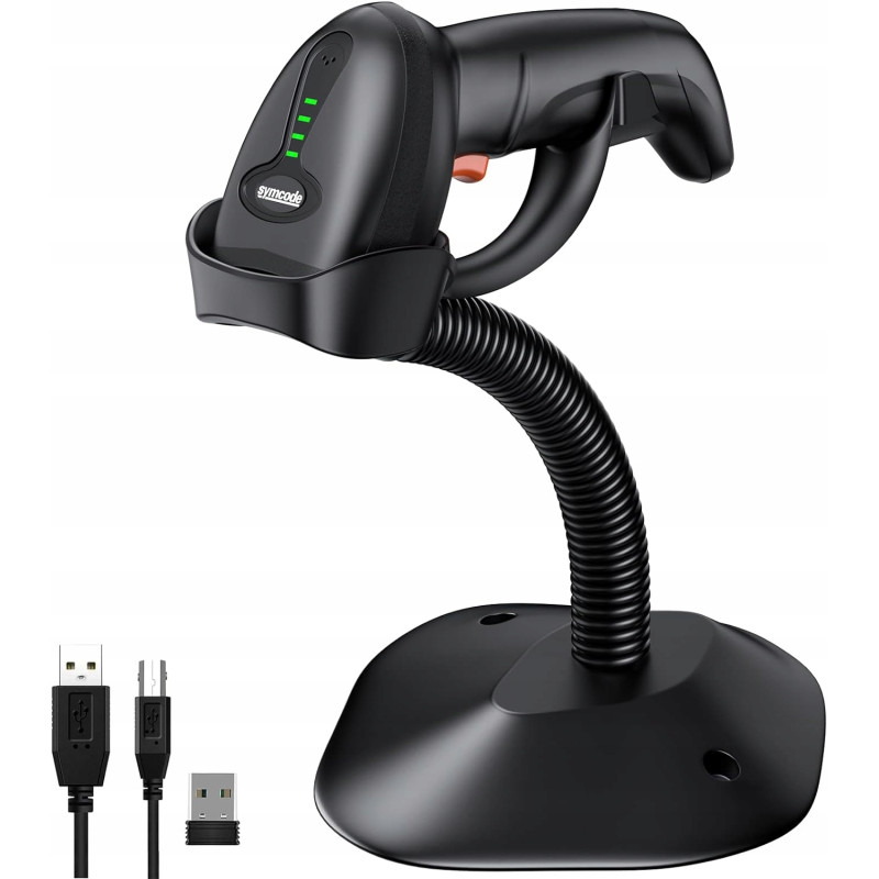Bezprzewodowy Czytnik Skaner Kodów Kreskowych 2D QR SYMCODE + Stojak