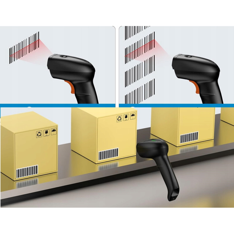 Bezprzewodowy Czytnik Skaner Kodów Kreskowych + Stojak 2D QR