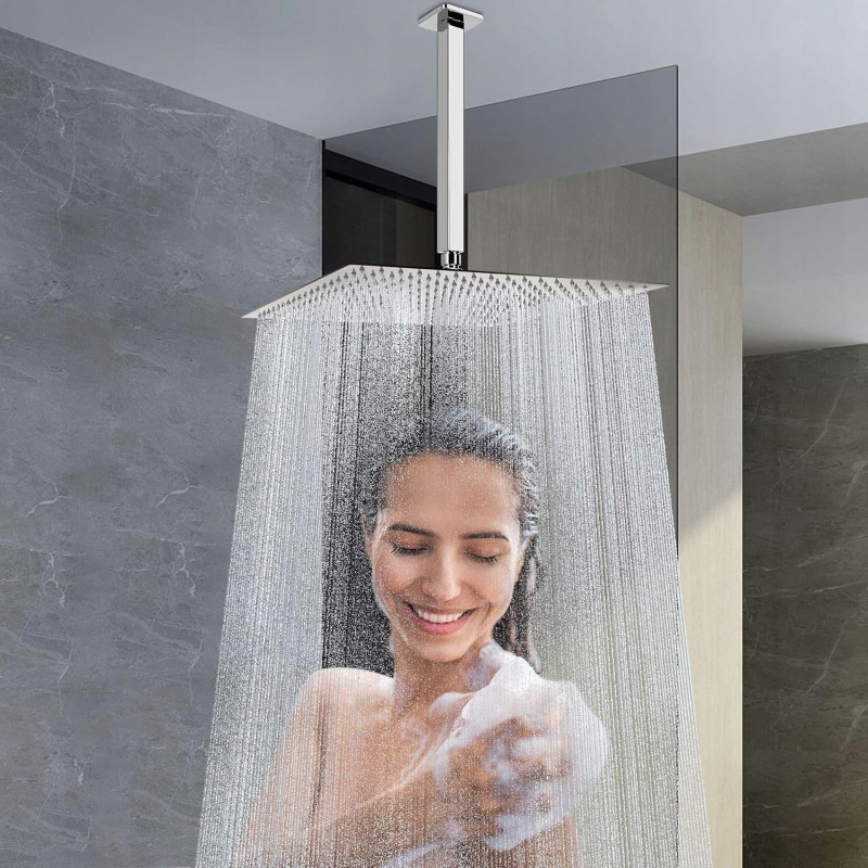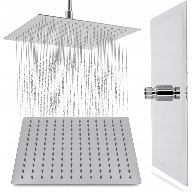 Deszczownica w formacie 30 centymetrowej kwadratowej głowicy prysznicowej wykonanej z nierdzewnej stali szczotkowanej lub z wykończeniem w kolorze chromu - do wyboru. Pełne pokrycie wodą całego ciała, konstrukcja ze stali nierdzewnej, odporna na korozję i bardzo trwała. LUKSUSOWY DESIGN PRYSZNICA, to musi być piękna ozdoba w Twojej łazience.