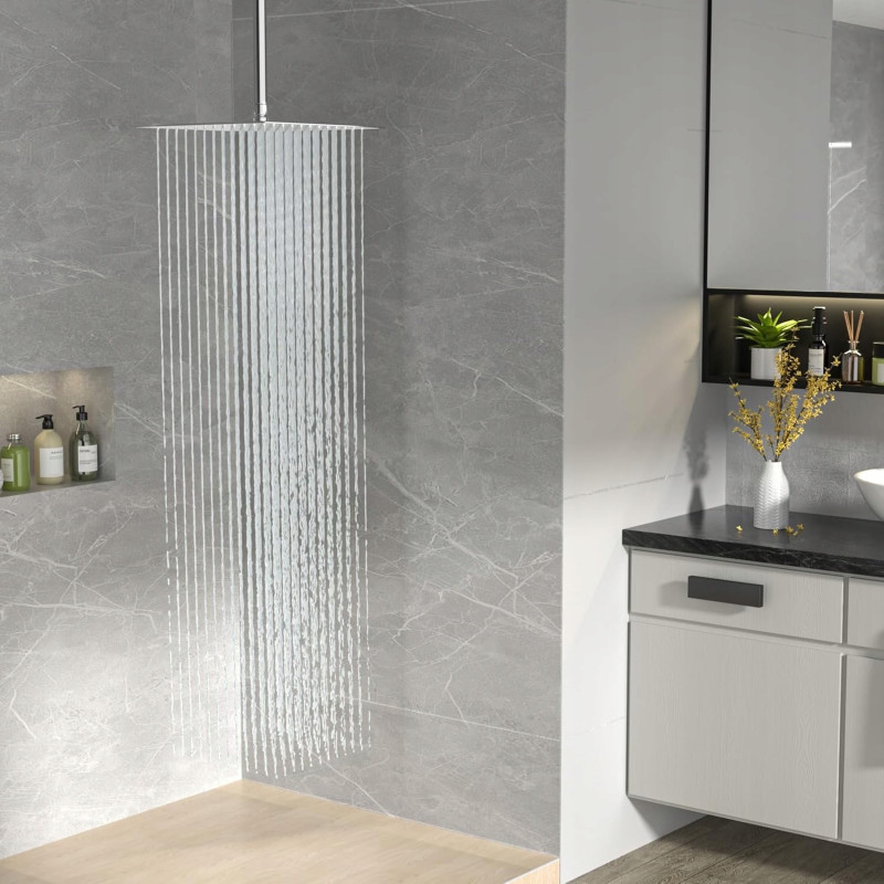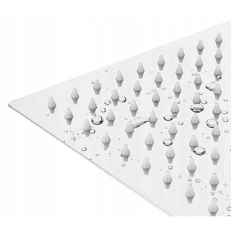 - Elegancki Design: Deszczownica o kwadratowym kształcie i chromowanej powierzchni doskonale komponuje się z nowoczesnymi wnętrzami. Ultra cienka konstrukcja (tylko 2 mm grubości) podkreśla minimalistyczny styl, dodając łazience elegancji.