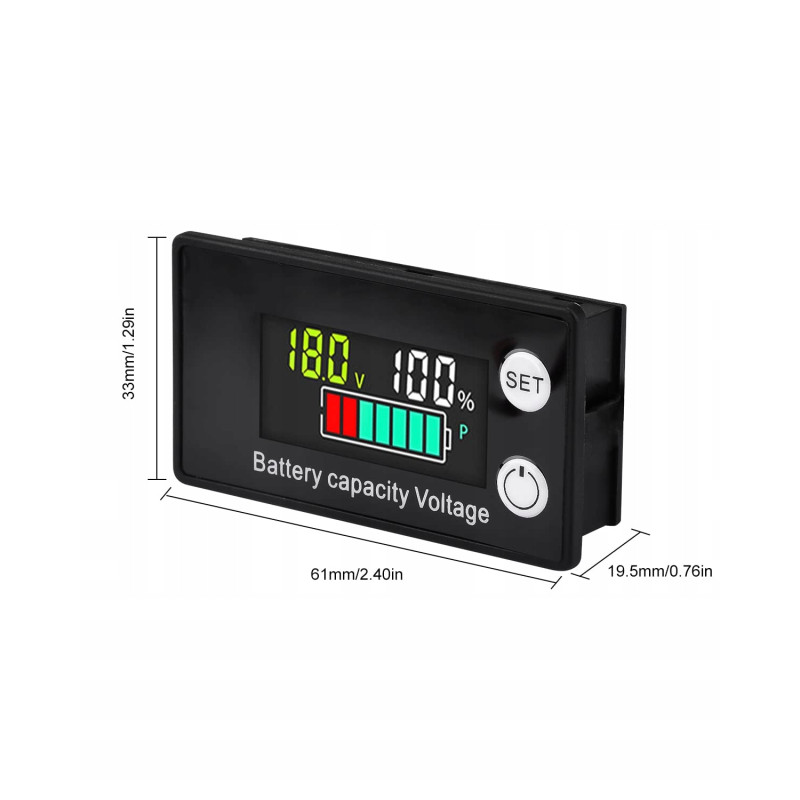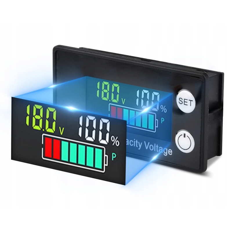- Tryb wyświetlania: Napięcie, procentowy poziom naładowania, graficzny wskaźnik naładowania.