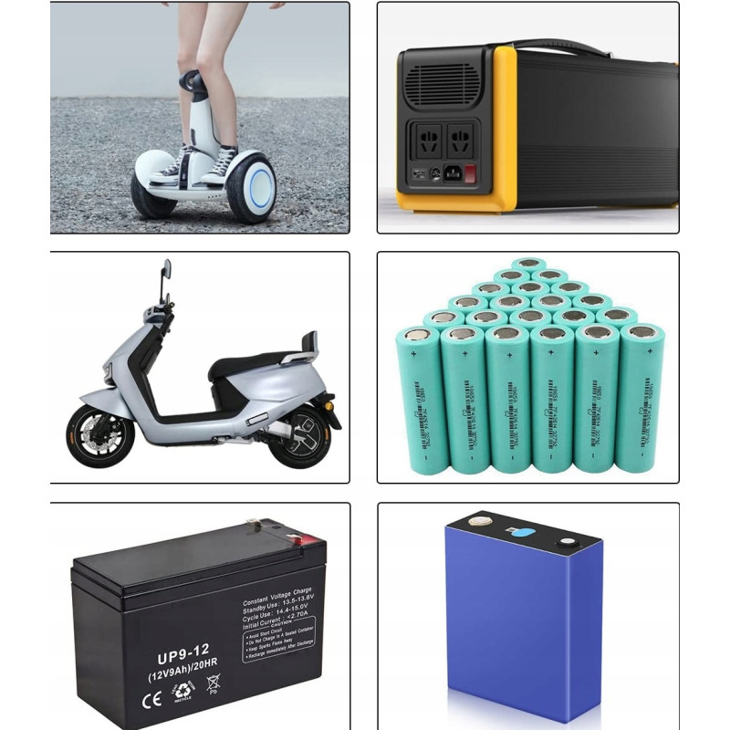 - Zakres napięcia: Miernik obsługuje szeroki zakres napięć od 8V do 100V, co czyni go kompatybilnym z różnorodnymi typami akumulatorów, w tym: