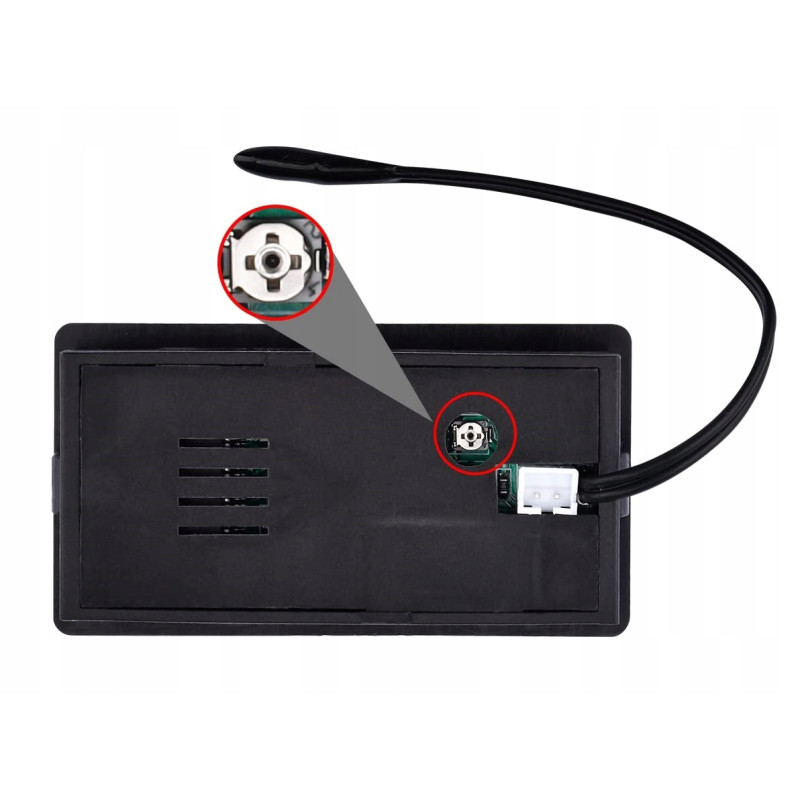 - Kalibracja i ochrona przed odwrotną polaryzacją: Miernik jest wyposażony w potencjometr z tyłu obudowy, który umożliwia kalibrację pomiaru napięcia, co gwarantuje precyzyjne odczyty. Dodatkowo posiada ochronę przed odwrotnym podłączeniem biegunów.