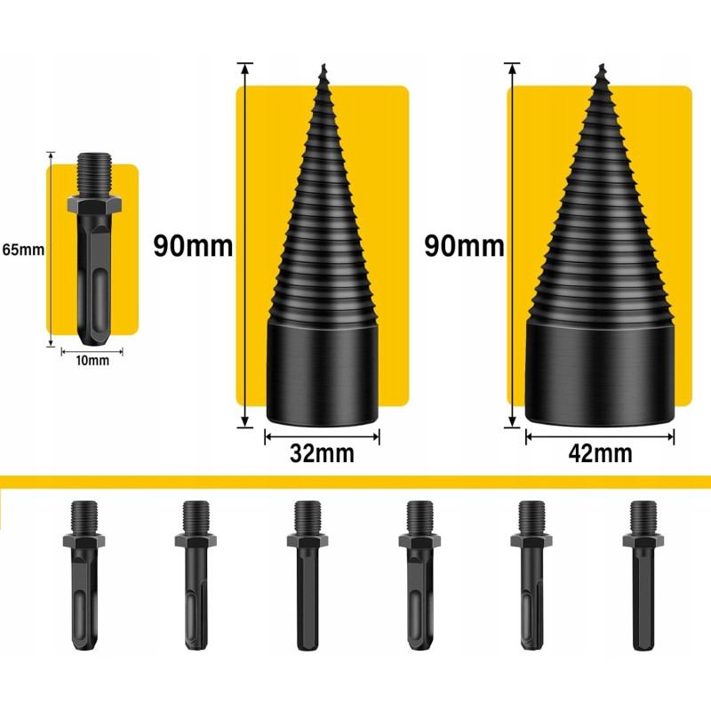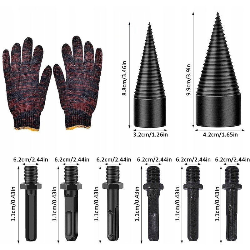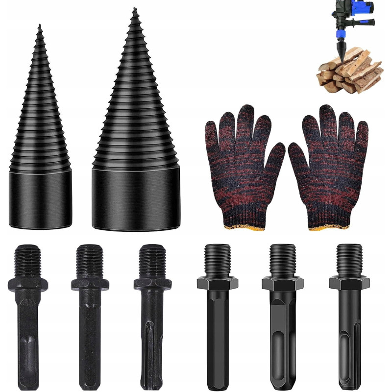 Świder do Łupania Drewna Opałowego Wiertło Stożek Łuparka 32 42 +Rękawiczki