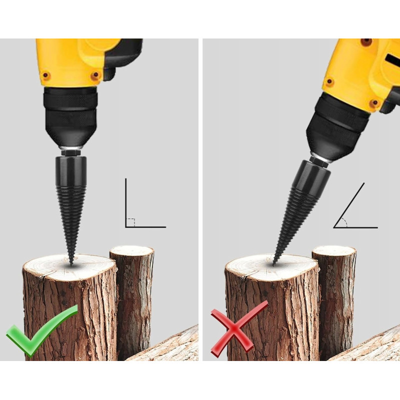 - Pionowe umieszczenie wiertła – Aby osiągnąć najlepsze wyniki, należy zawsze trzymać wiertło pionowo (90°) w stosunku do kawałka drewna. To zapewni równomierne i efektywne rozłupywanie drewna oraz zminimalizuje ryzyko uszkodzenia wiertła.