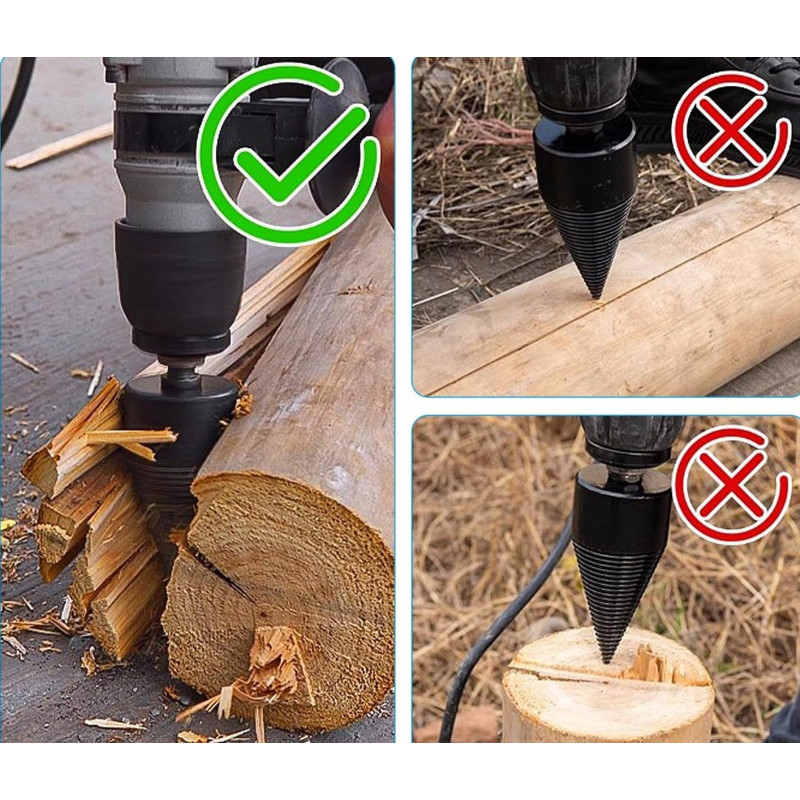 Stosując te zasady, można pracować szybko i bezpiecznie, a także uzyskać doskonałe rezultaty przy łupaniu drewna przy pomocy stożkowego wiertła.