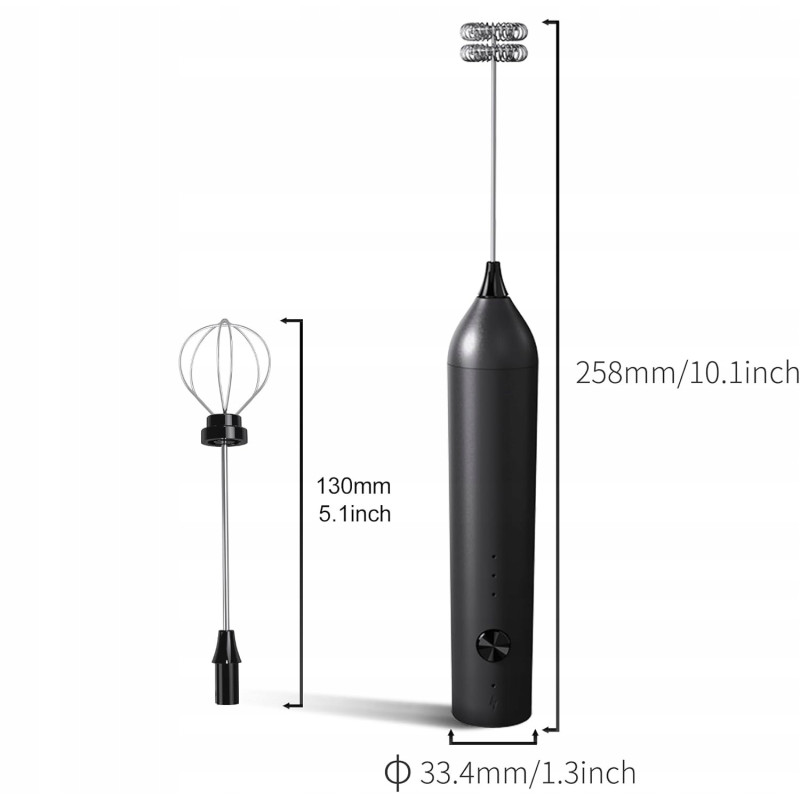 Trzepaczki do spieniania wykonane są z najwyższej jakości stali nierdzewnej 304 przeznaczonej do kontaktu z żywnością. Zawierają czarną, odłączaną podwójną trzepaczkę, która ułatwia mieszanie i tworzenie różnej ilości piany.