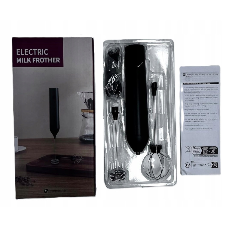 - 1 x elektryczny spieniacz do mleka (z 1 dwuwarstwową trzepaczką)