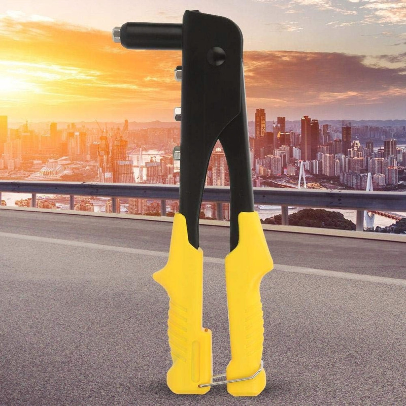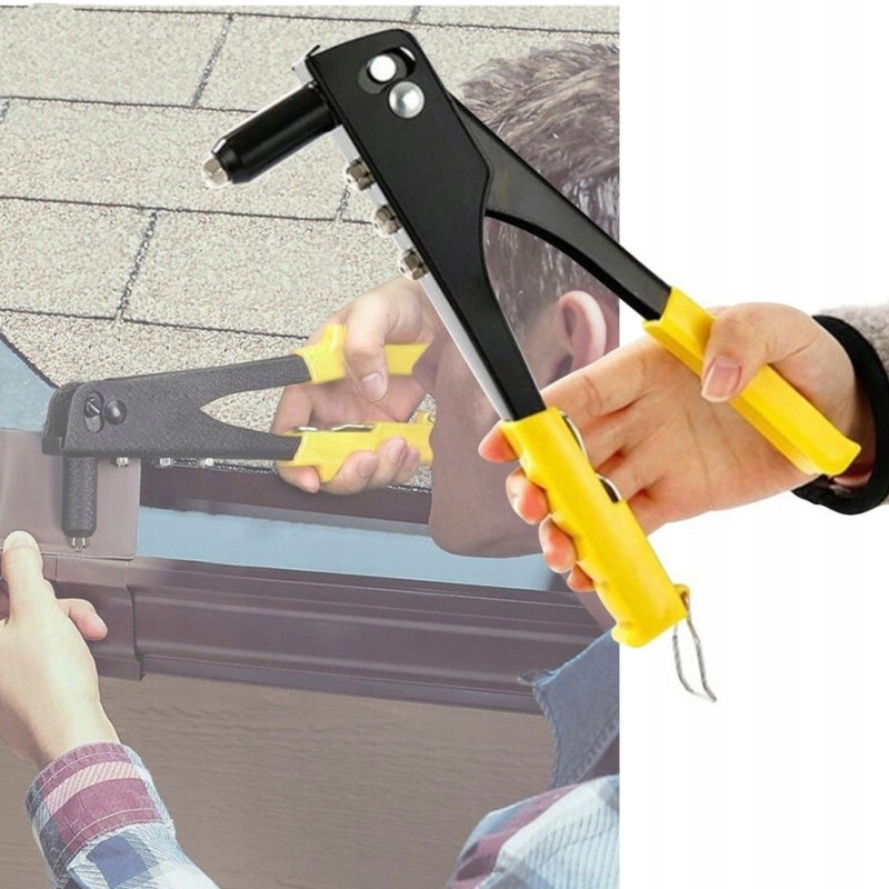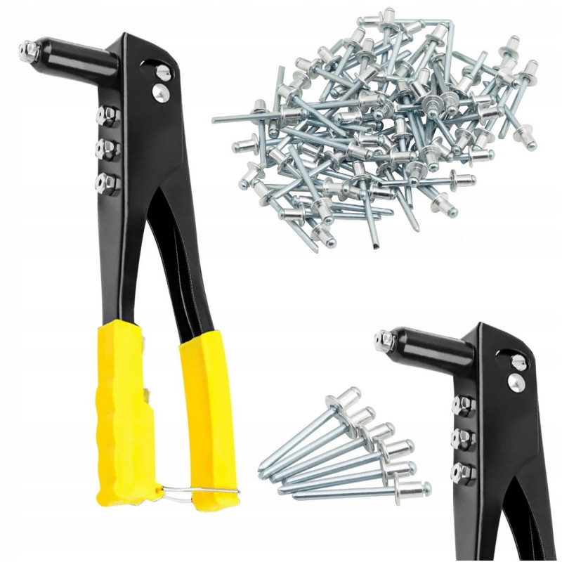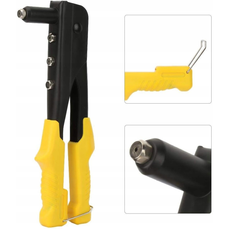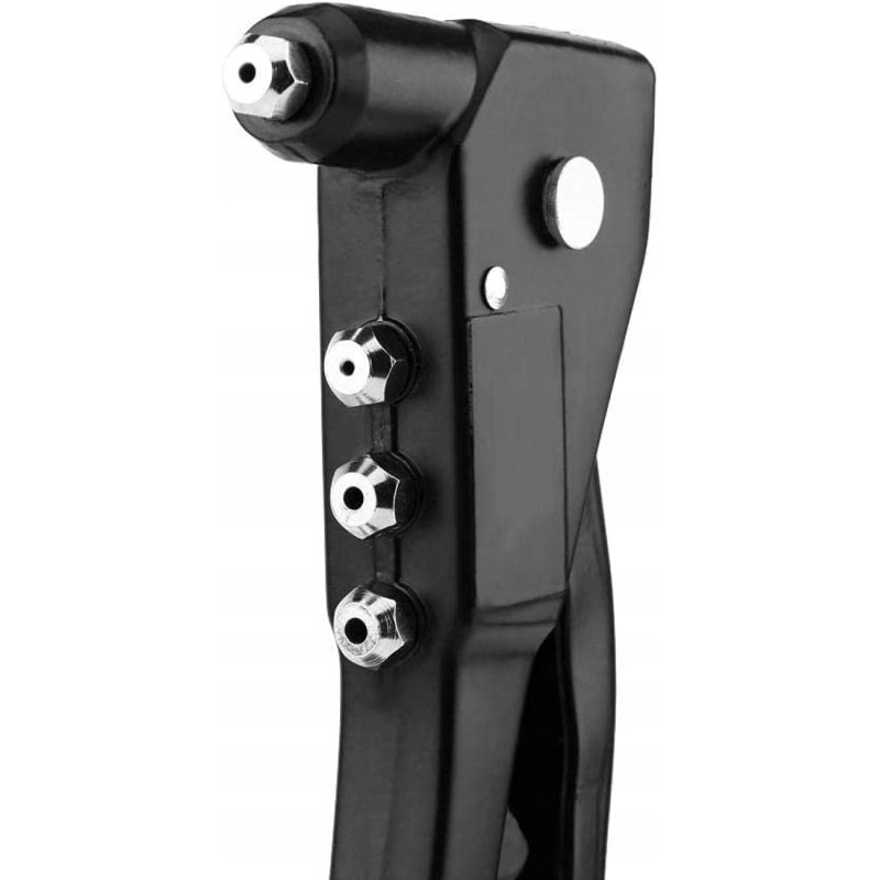 Nitownica ręczną z wymiennymi końcówkami, antypoślizgowymi uchwytami oraz blokadą bezpieczeństwa. W zestawie znajduje się także klucz do wymiany końcówek, które są mocowane na narzędziu. Końcówki pasują do różnych rozmiarów nitów, co umożliwia wszechstronne zastosowanie.