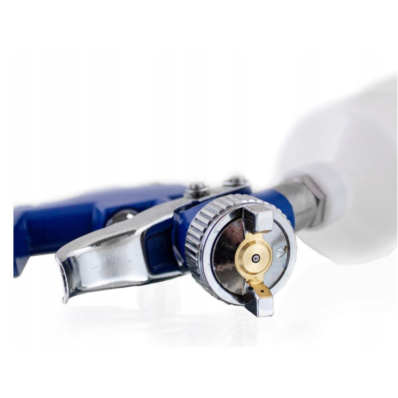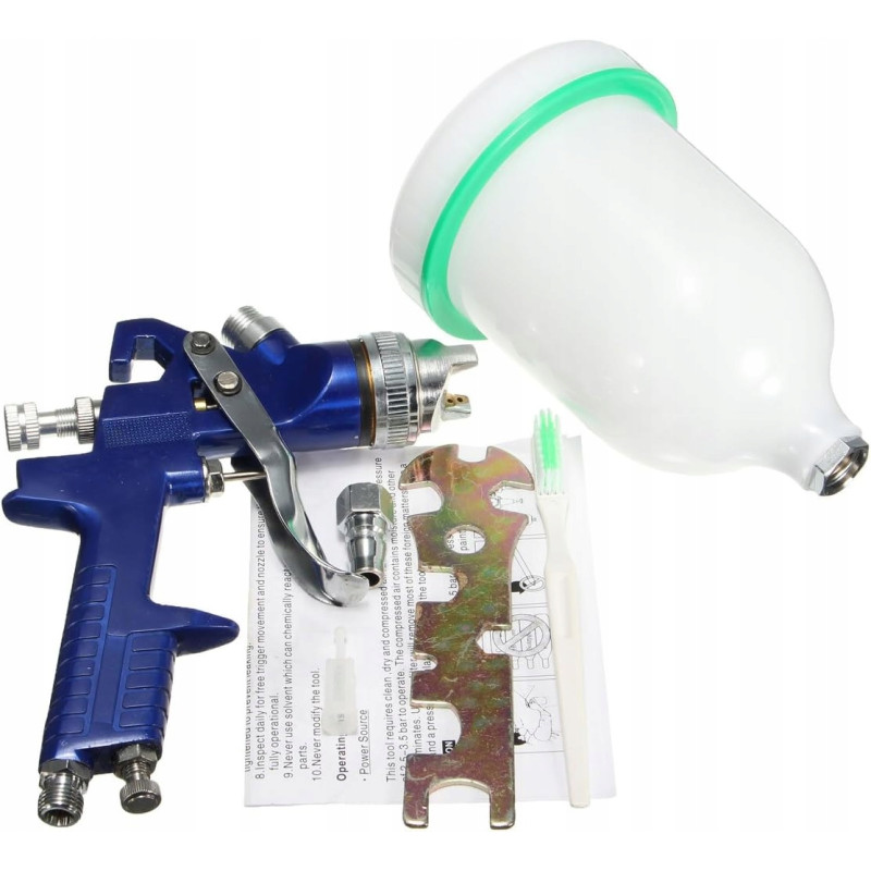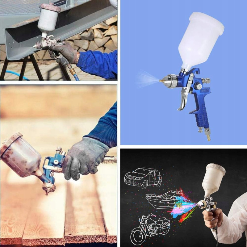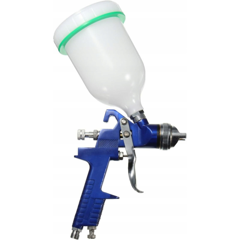 - Duży Zbiornik na Farby 600 ml: Pistolet posiada zbiornik o pojemności 600 ml, co pozwala na długotrwałą pracę bez konieczności częstego uzupełniania farby. Wykonany z wytrzymałego plastiku, jest odporny na chemikalia i łatwy w czyszczeniu.