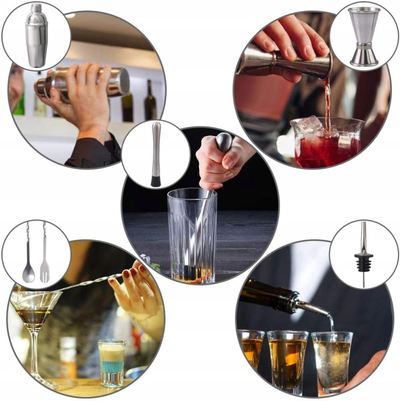 Ten zestaw barmański to idealne połączenie narzędzi dla każdego, kto chce przyrządzać perfekcyjne drinki, zarówno na prywatnych przyjęciach, jak i w profesjonalnym barze.