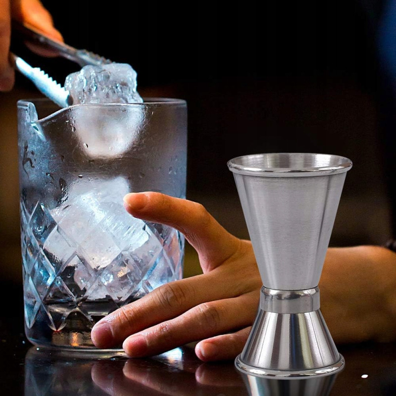 - Miarka barmańska (Jigger) – dwustronna miarka o pojemności 15 ml i 30 ml, pozwalająca na precyzyjne odmierzanie składników, co jest kluczowe przy tworzeniu idealnie zbalansowanych koktajli.