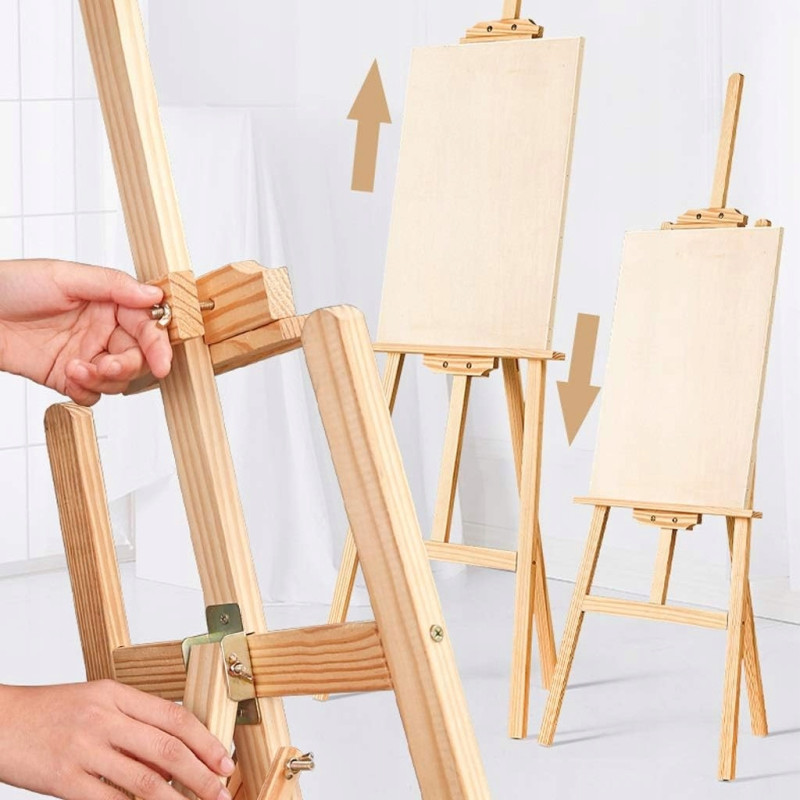 Łatwa w obsłudze sztaluga z regulacją wysokości, umożliwiająca dostosowanie pozycji płótna do indywidualnych potrzeb i komfortu pracy.