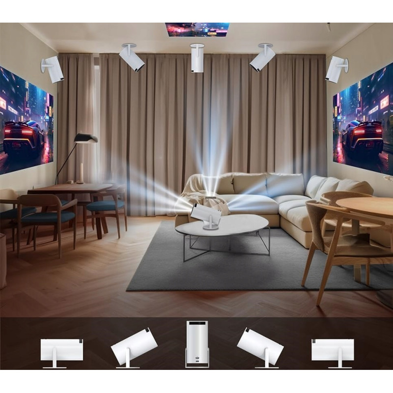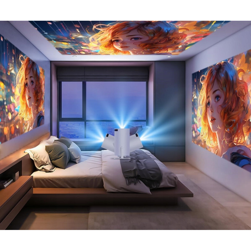 projektor oferuje elastyczność w umieszczeniu obrazu na każdej powierzchni, czy to na ścianach, suficie, czy w innych miejscach, idealnie dopasowując się do Twojej przestrzeni.”