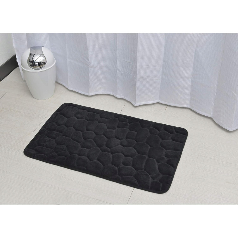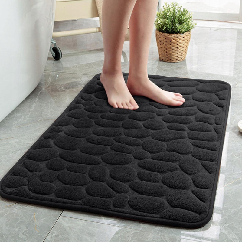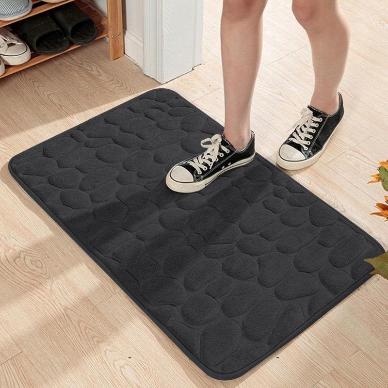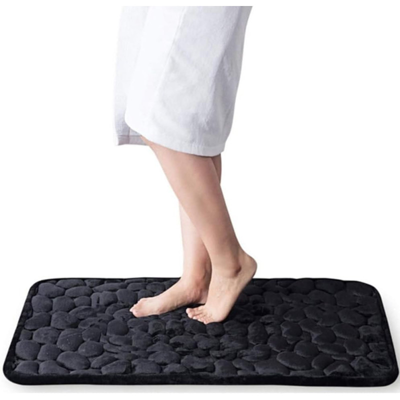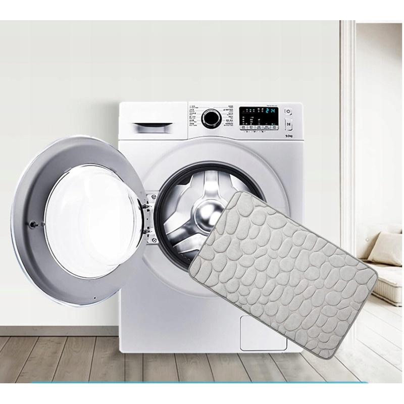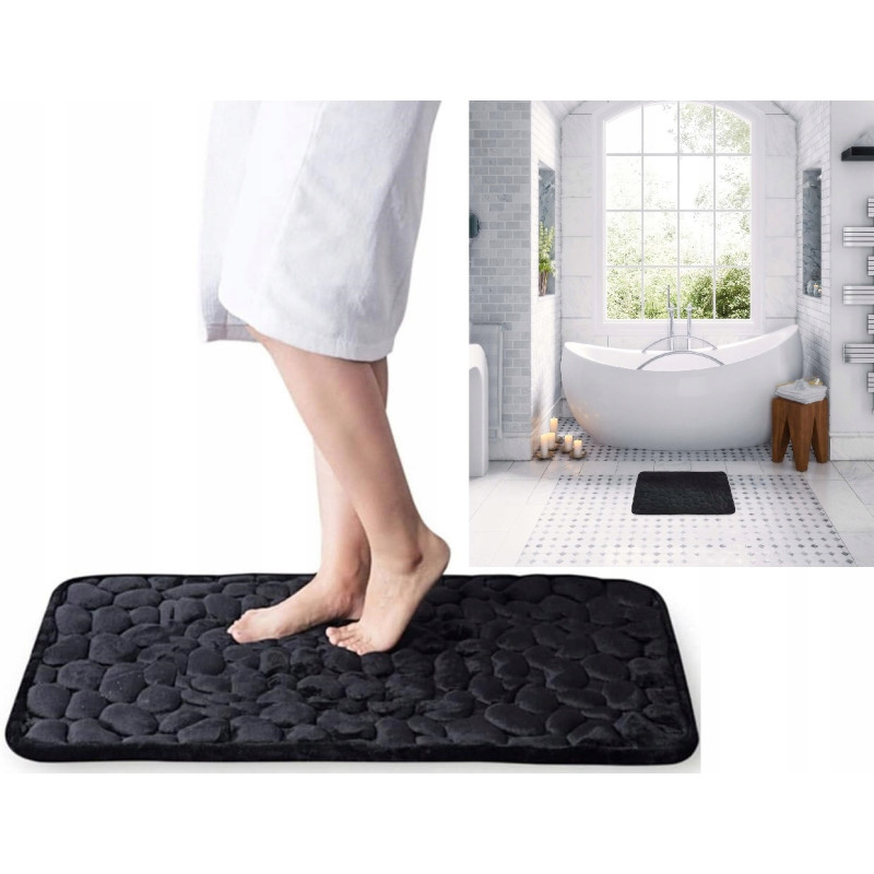 Dywanik składa się z miękkiej warstwy z mikrofibry, wypełnionej pianką Memory Foam, która doskonale dostosowuje się do kształtu stopy. Spód wykonany z antypoślizgowego kauczuku SBR zapewnia stabilność na różnych powierzchniach, takich jak płytki łazienkowe czy podłogi drewniane. Struktura 3D w kształcie kamieni dodaje nowoczesnego wyglądu i przyciąga wzrok, idealnie pasując do każdego wnętrza.