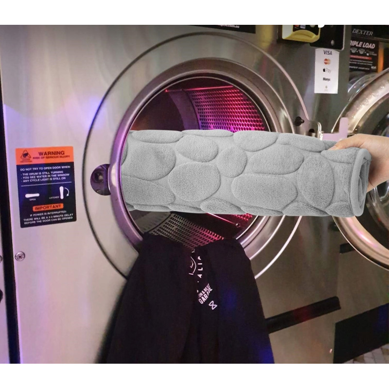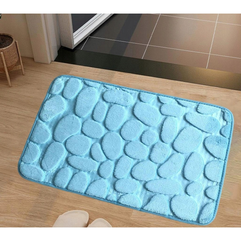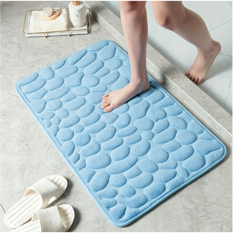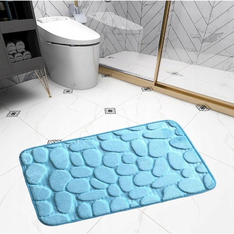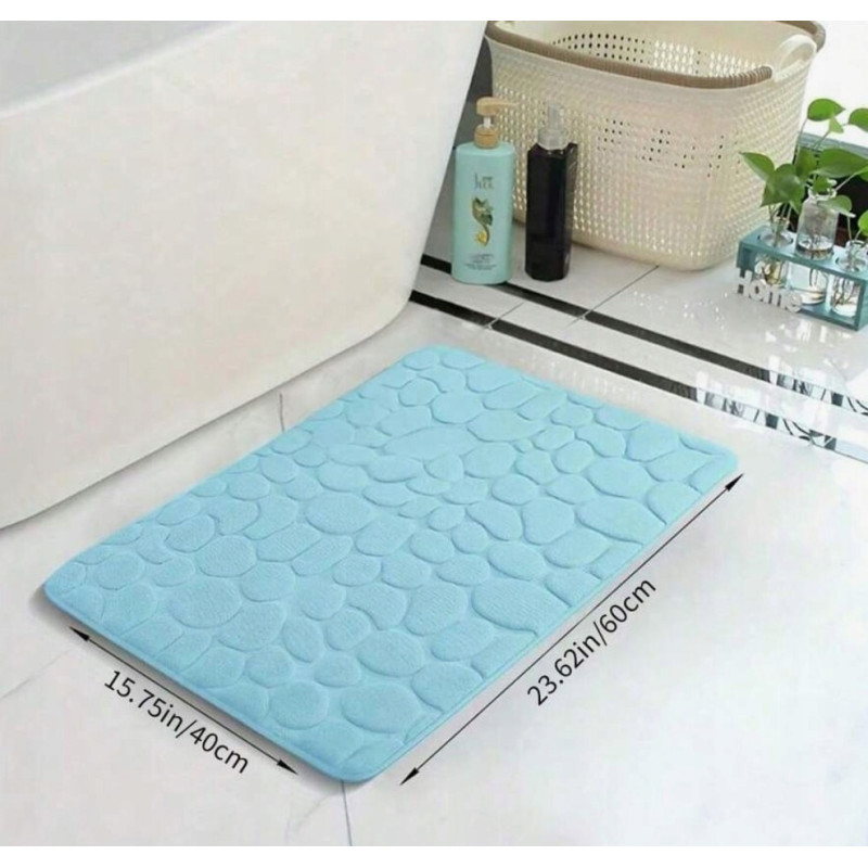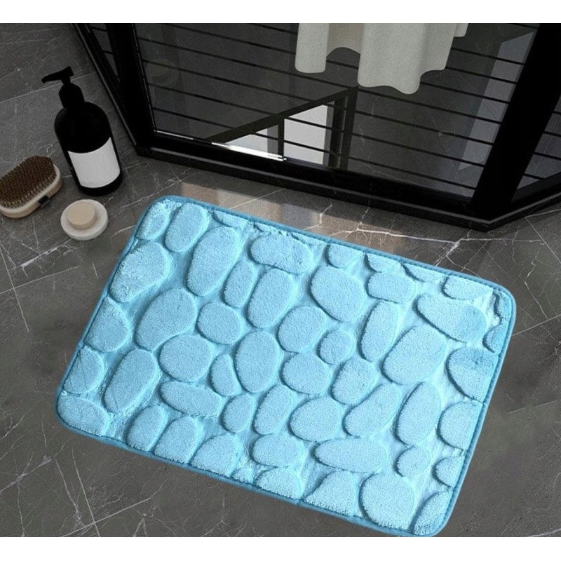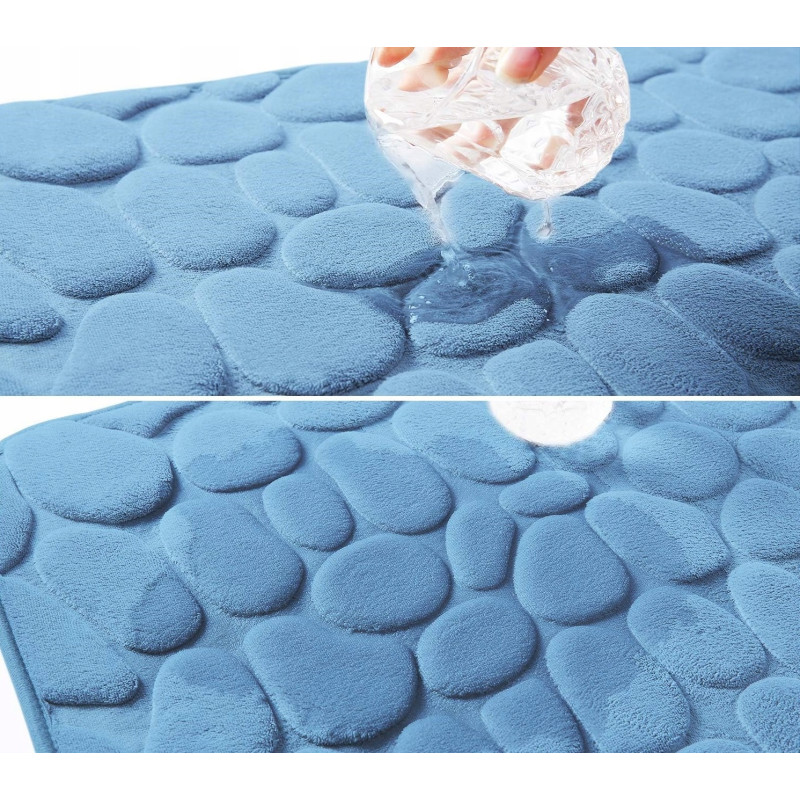 Dywanik składa się z miękkiej warstwy z mikrofibry, wypełnionej pianką Memory Foam, która doskonale dostosowuje się do kształtu stopy. Spód wykonany z antypoślizgowego kauczuku SBR zapewnia stabilność na różnych powierzchniach, takich jak płytki łazienkowe czy podłogi drewniane. Struktura 3D w kształcie kamieni dodaje nowoczesnego wyglądu i przyciąga wzrok, idealnie pasując do każdego wnętrza.