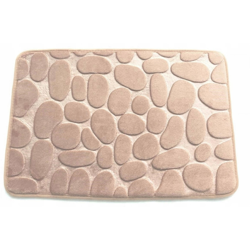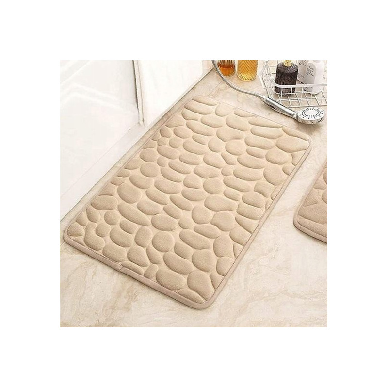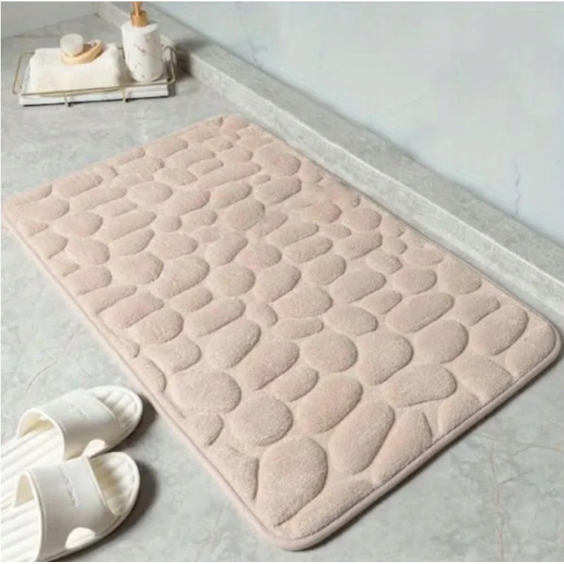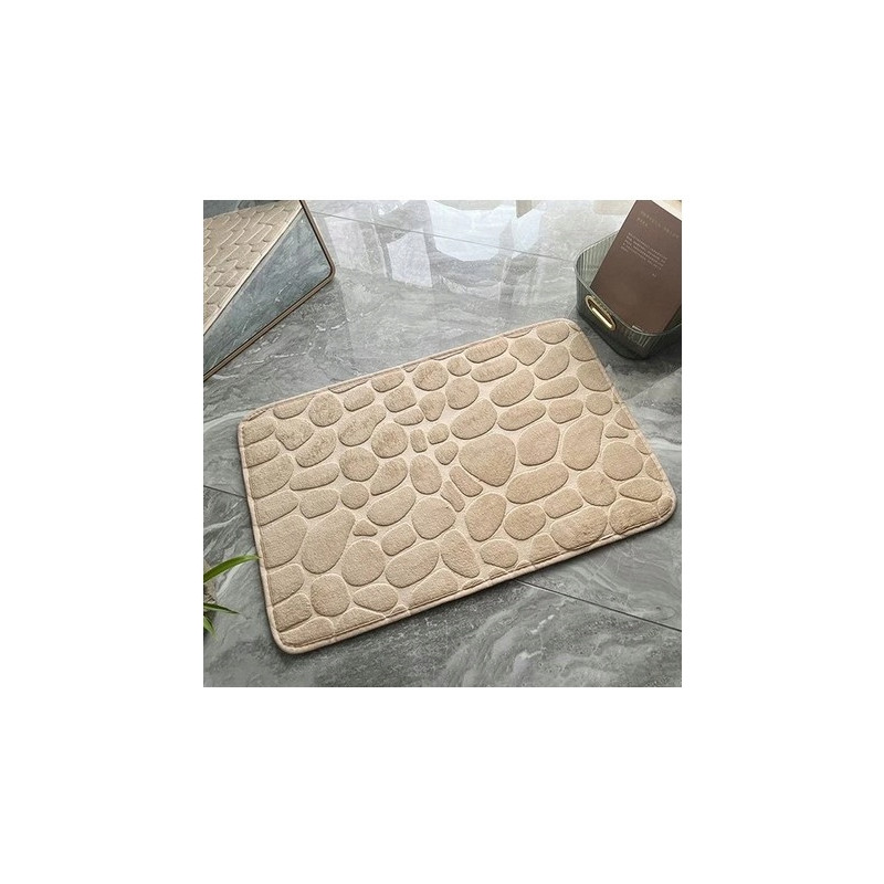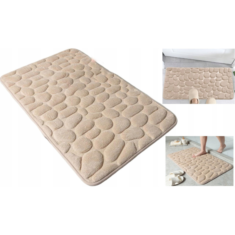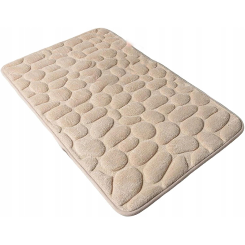 Dywanik składa się z miękkiej warstwy z mikrofibry, wypełnionej pianką Memory Foam, która doskonale dostosowuje się do kształtu stopy. Spód wykonany z antypoślizgowego kauczuku SBR zapewnia stabilność na różnych powierzchniach, takich jak płytki łazienkowe czy podłogi drewniane. Struktura 3D w kształcie kamieni dodaje nowoczesnego wyglądu i przyciąga wzrok, idealnie pasując do każdego wnętrza.