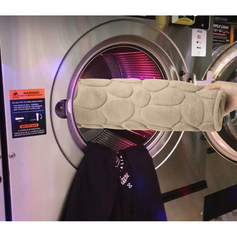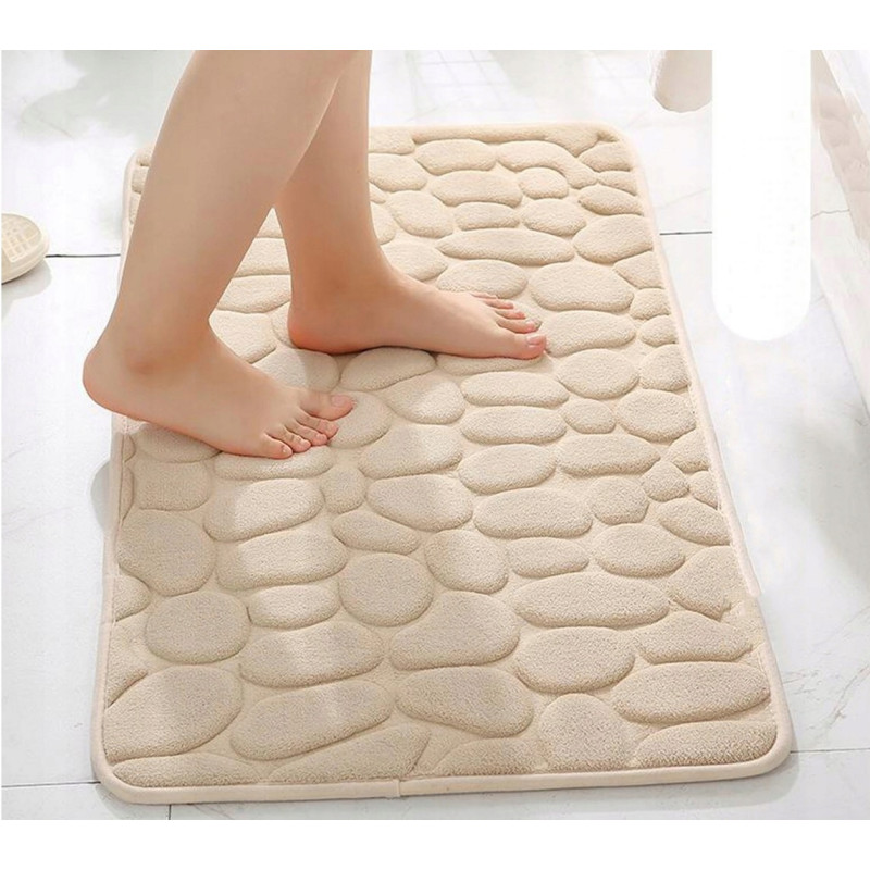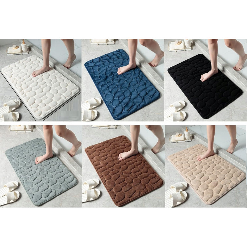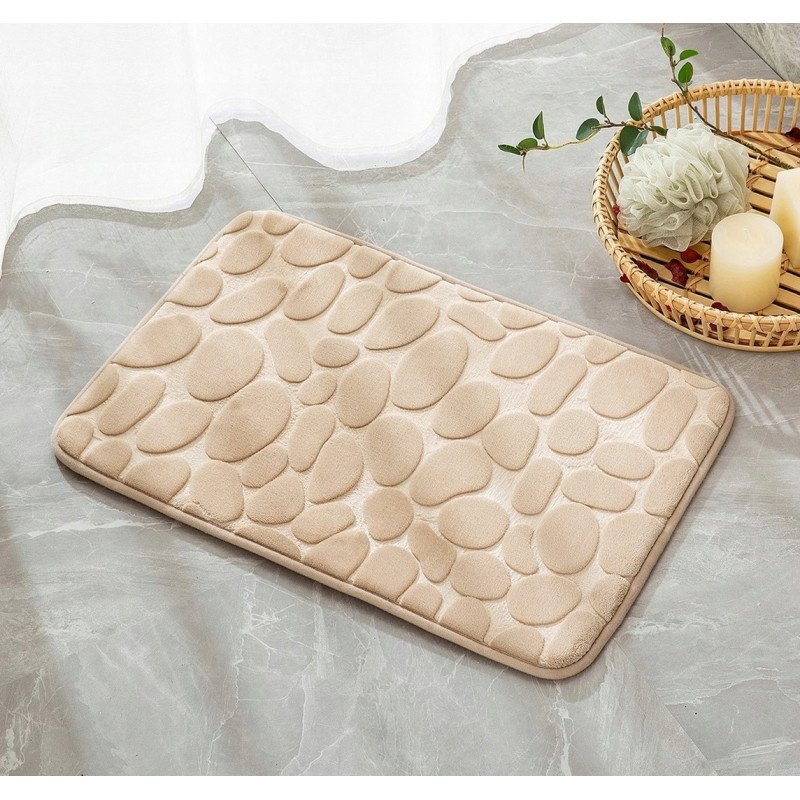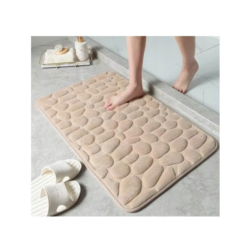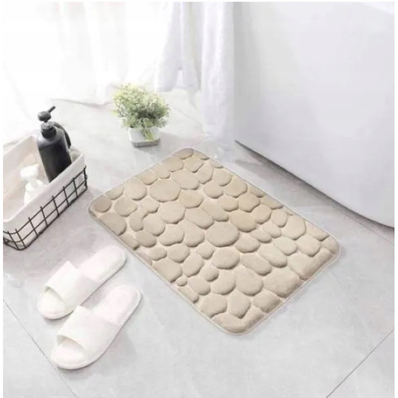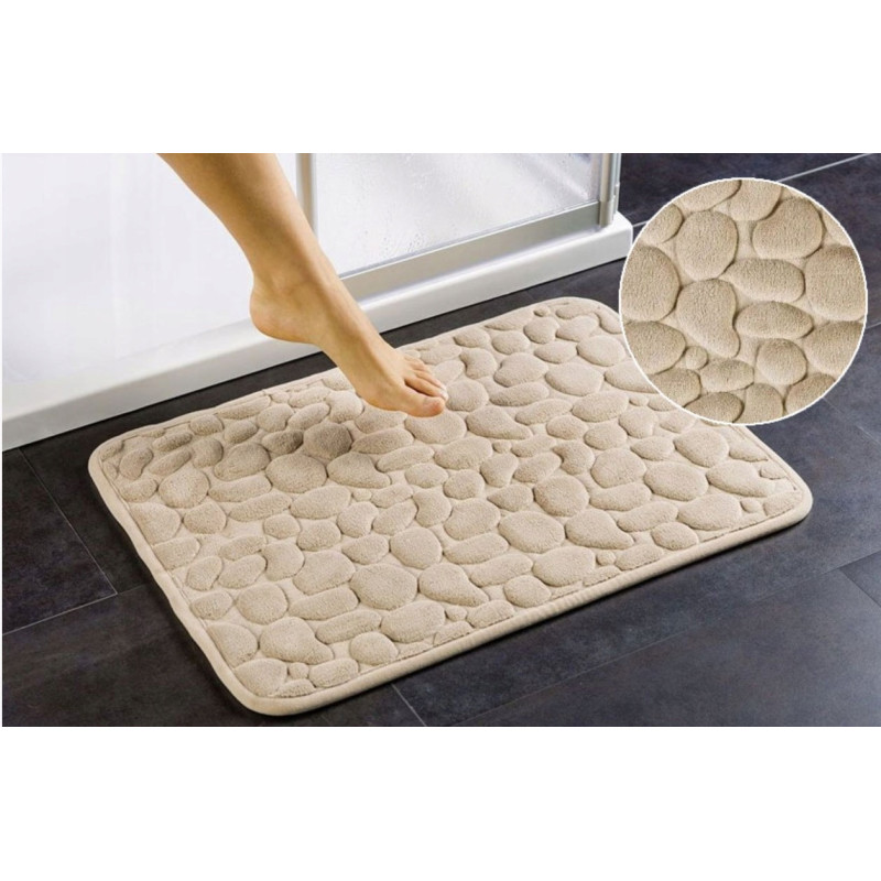 Dywanik składa się z miękkiej warstwy z mikrofibry, wypełnionej pianką Memory Foam, która doskonale dostosowuje się do kształtu stopy. Spód wykonany z antypoślizgowego kauczuku SBR zapewnia stabilność na różnych powierzchniach, takich jak płytki łazienkowe czy podłogi drewniane. Struktura 3D w kształcie kamieni dodaje nowoczesnego wyglądu i przyciąga wzrok, idealnie pasując do każdego wnętrza.