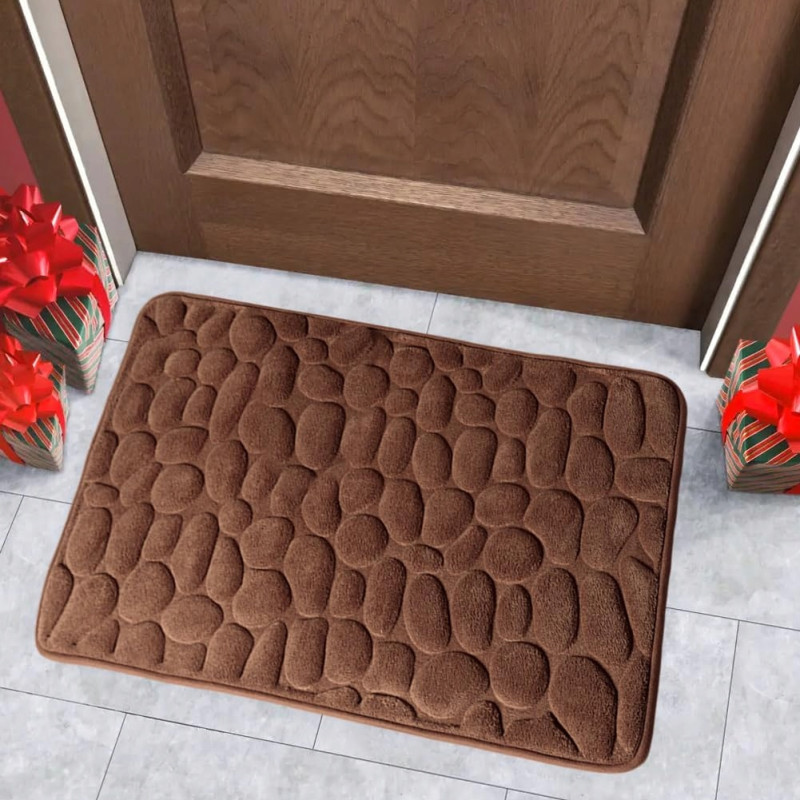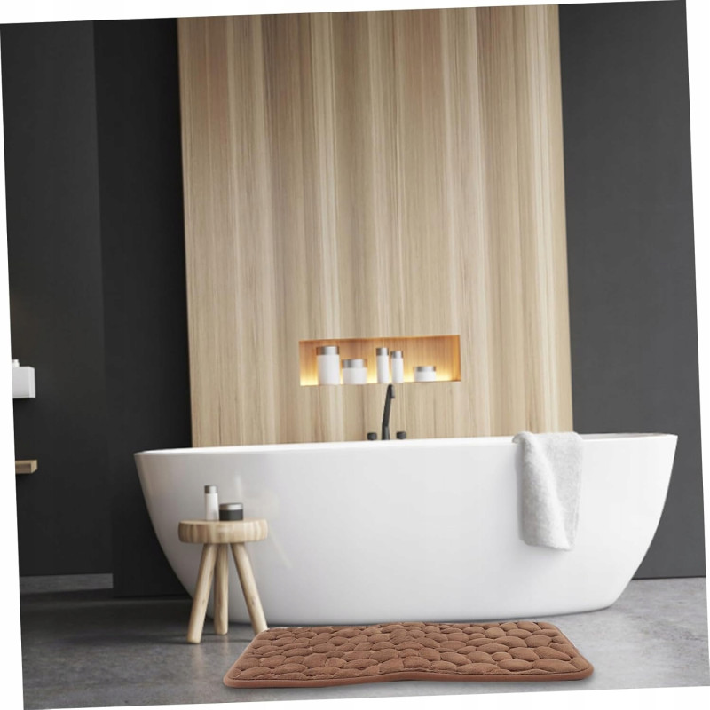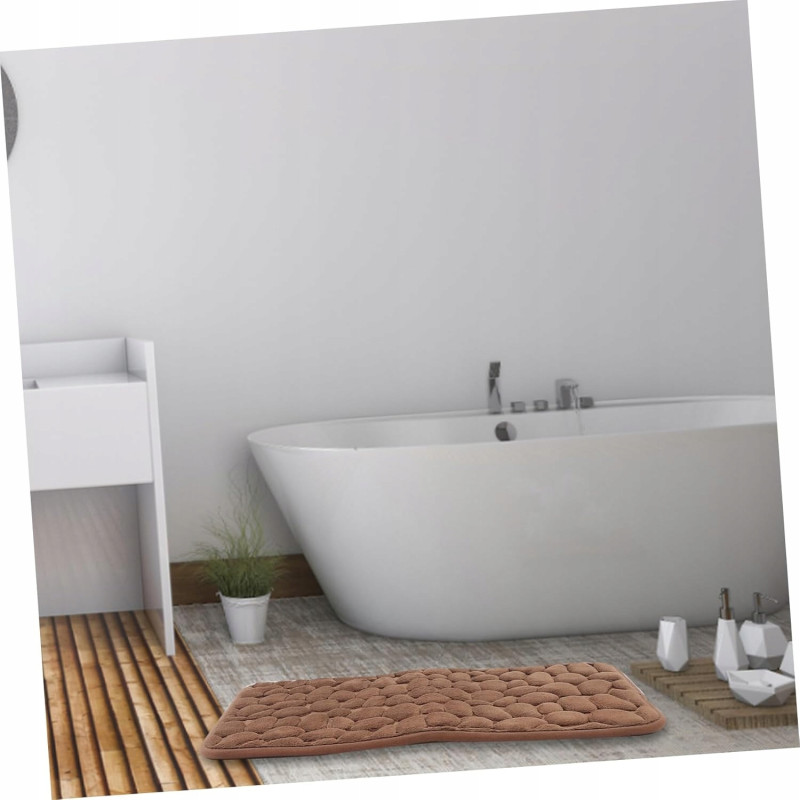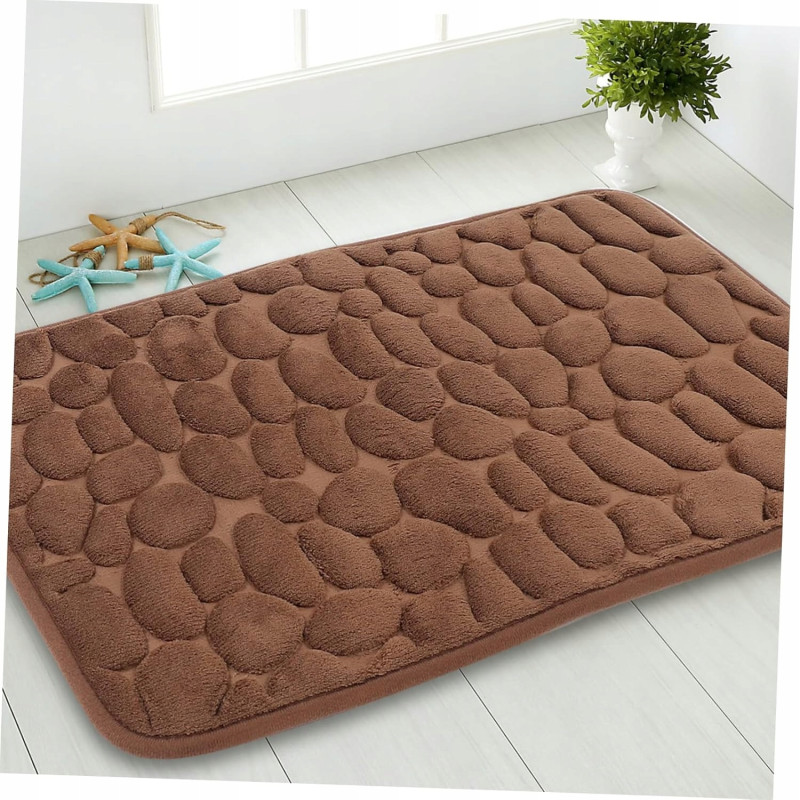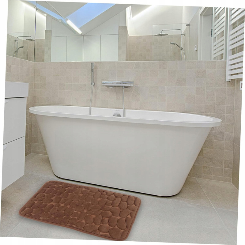 Dywanik składa się z miękkiej warstwy z mikrofibry, wypełnionej pianką Memory Foam, która doskonale dostosowuje się do kształtu stopy. Spód wykonany z antypoślizgowego kauczuku SBR zapewnia stabilność na różnych powierzchniach, takich jak płytki łazienkowe czy podłogi drewniane. Struktura 3D w kształcie kamieni dodaje nowoczesnego wyglądu i przyciąga wzrok, idealnie pasując do każdego wnętrza.