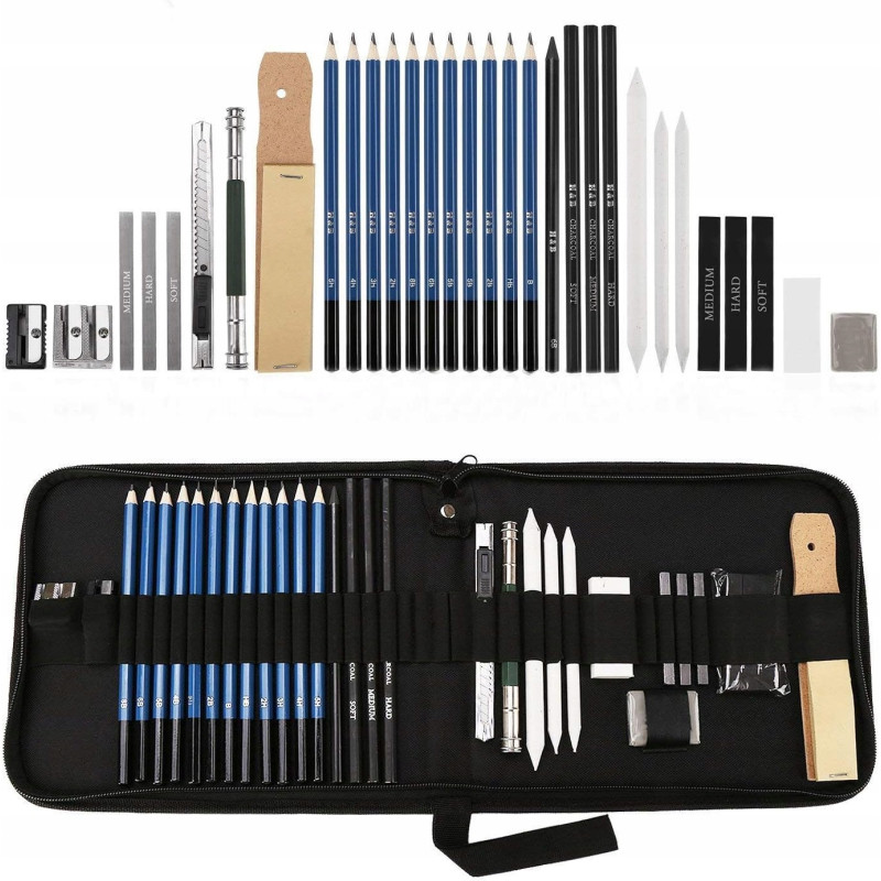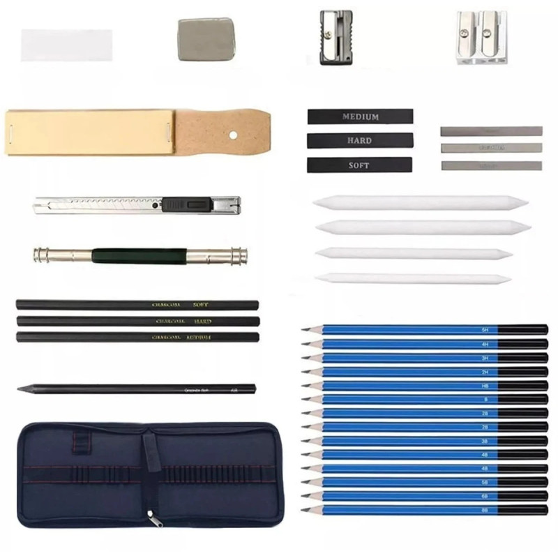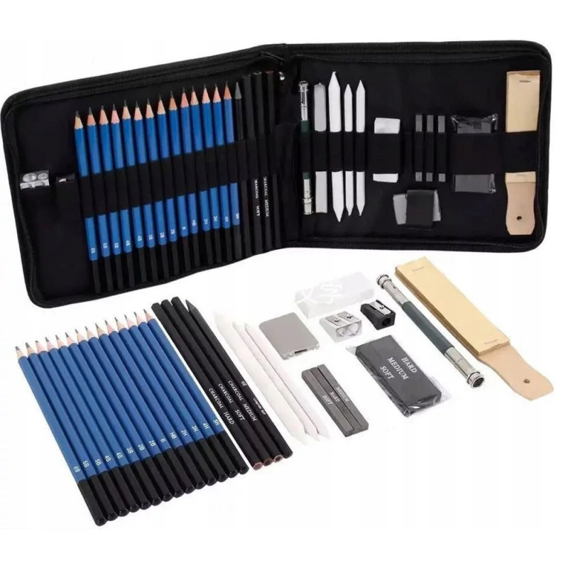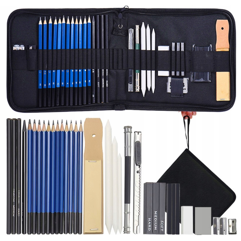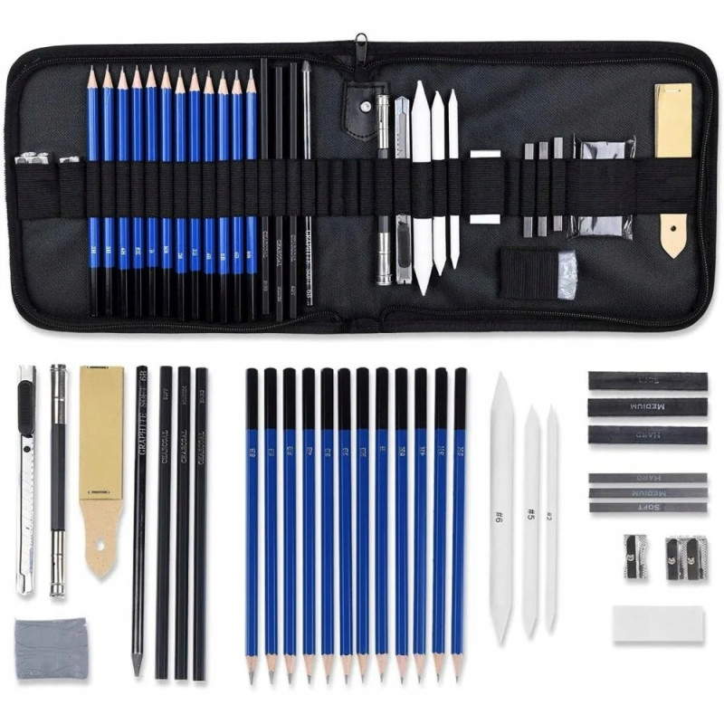 - Kompletny zestaw 33 elementów: W zestawie znajdziesz wszystko, co jest niezbędne do tworzenia wyjątkowych prac. Ołówki różnej twardości, grafity, węgle, rozcieracze i wiele innych narzędzi zapewnią pełną swobodę twórczą.