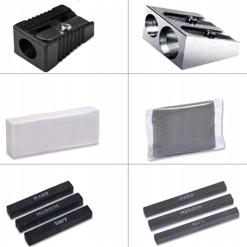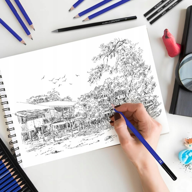 - Szeroki wybór ołówków i akcesoriów: Zróżnicowanie twardości ołówków i bogactwo akcesoriów sprawia, że zestaw jest uniwersalny i odpowiedni do każdego rodzaju rysunku – od precyzyjnych szkiców po artystyczne portrety.