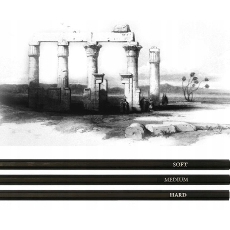 - 3 ołówki węglowe: miękki, średni, twardy.