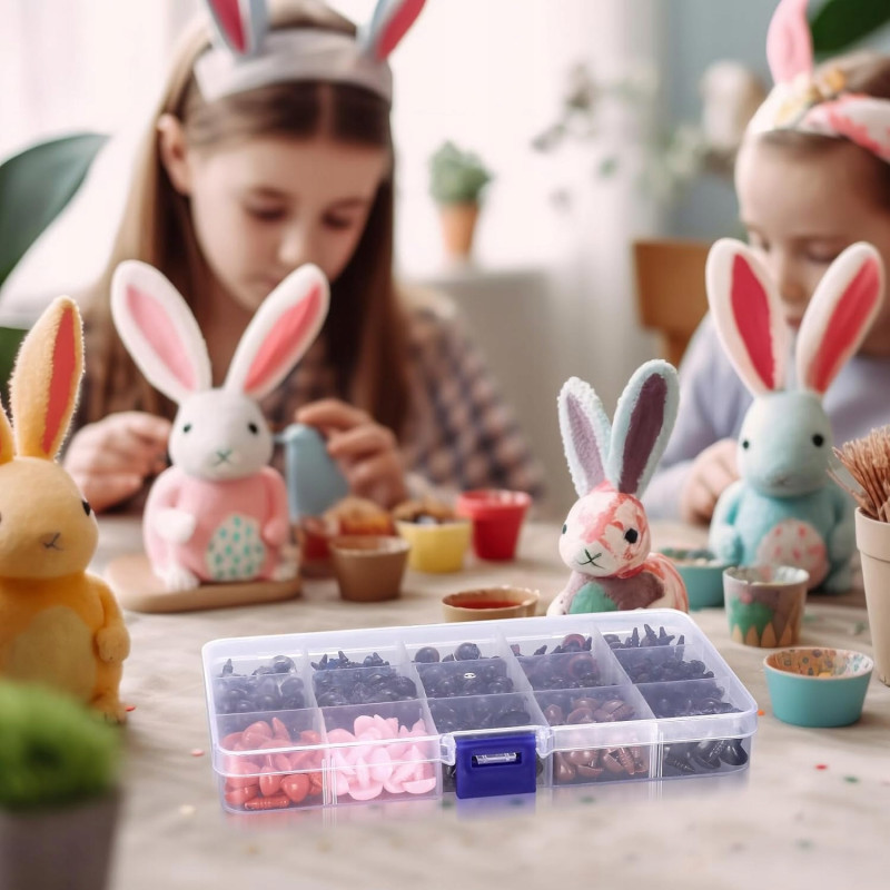 To rozwiązanie dla miłośników rękodzieła, pasjonatów tworzenia lalek oraz dla tych, którzy pragną odnowić i nadać życie starym maskotkom. Zawiera szeroką gamę kolorów i rozmiarów, które spełnią wszelkie potrzeby, niezależnie od tego, czy tworzysz nową lalkę, pluszaka, czy naprawiasz ulubioną zabawkę swojego dziecka. Wszystkie elementy zostały zapakowane w praktyczne, plastikowe pudełko z przegródkami, co ułatwia organizację i szybkie znalezienie odpowiedniego komponentu.