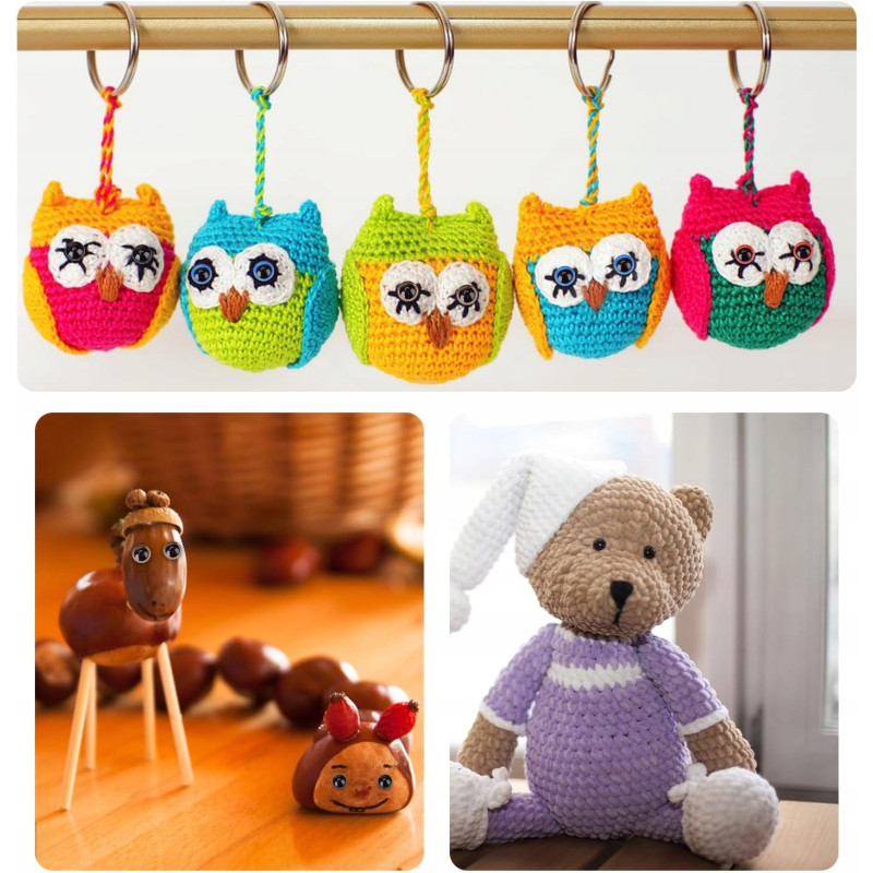 - Wszechstronność: Oczka i noski w różnych rozmiarach od 5 mm do 12 mm, umożliwiają idealne dopasowanie do różnego rodzaju zabawek, lalek oraz projektów szydełkowych.