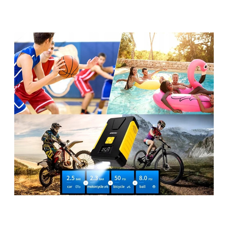 Idealny na wczasy, camping, czy weekendowe wyjazdy. Z łatwością napompujesz materac, ponton, piłki do gry, a także opony rowerowe i samochodowe. Precyzyjne ustawienia ciśnienia dla każdego rodzaju aktywności: