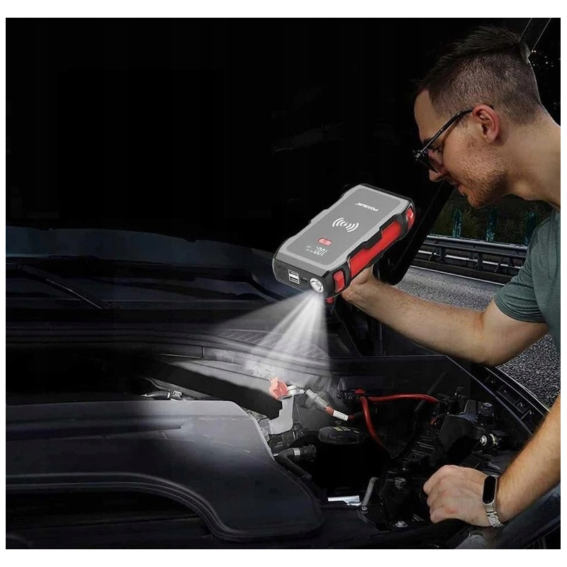 Mocny Jump Starter BOOSTER Rozruch PowerBank Ładowarka QI 26800 mAh 800 A FJS700