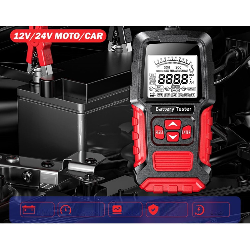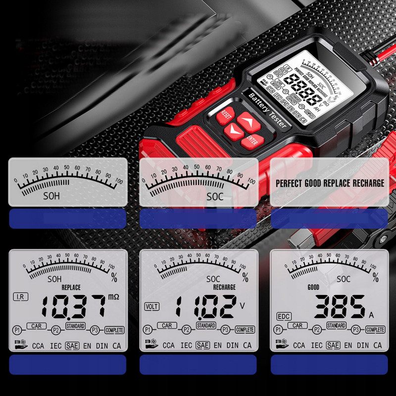 CYFROWY TESTER DO AKUMULATORÓW BATERII 12V 24V FOXSUR FBT-300 3Ah - 400Ah