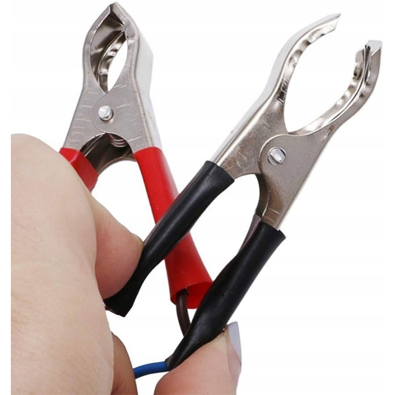 - Czarny klips: Podłącz do bieguna ujemnego (minus) źródła zasilania.
