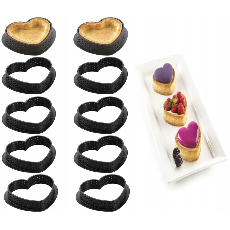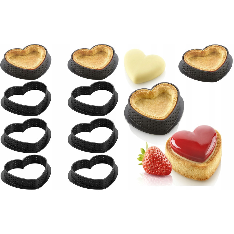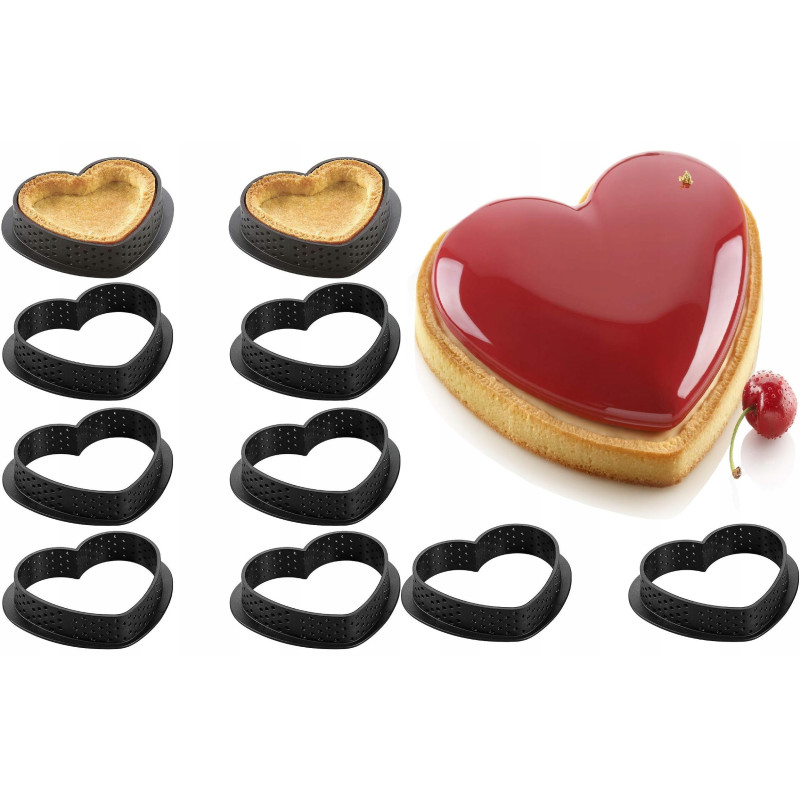 Foremki do Tartaletek Formy Rant Perforowany Forma Silikonowe 10 szt SERCE