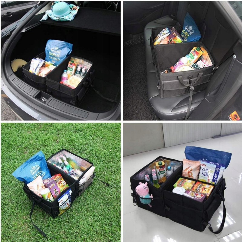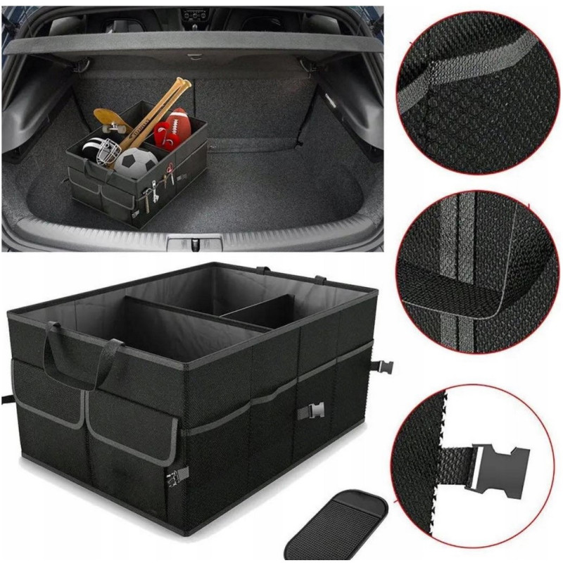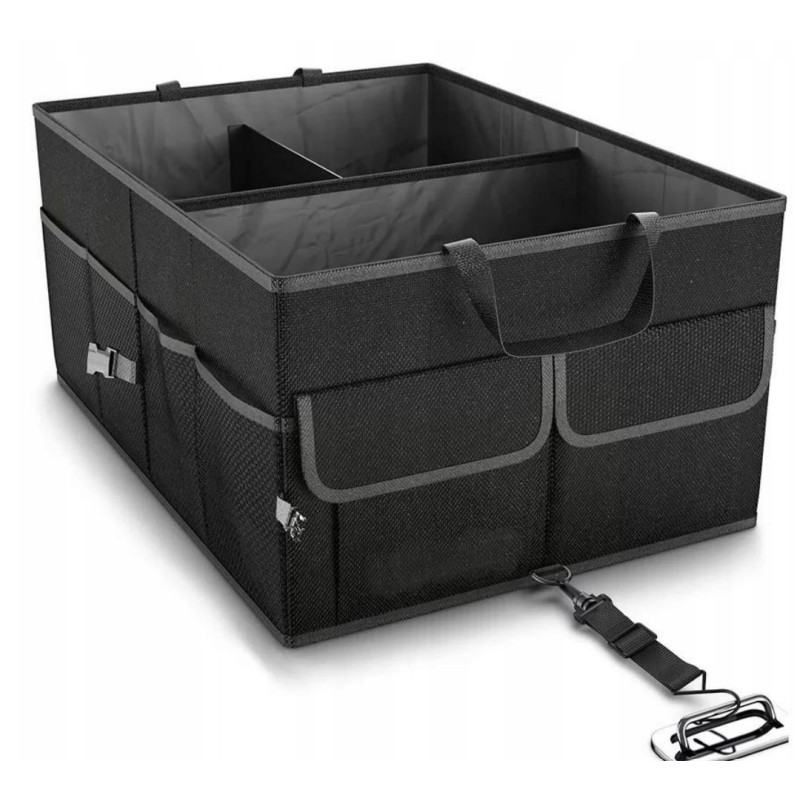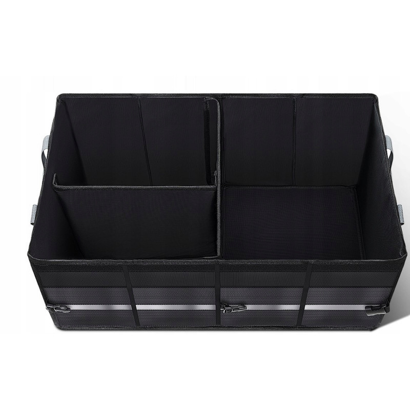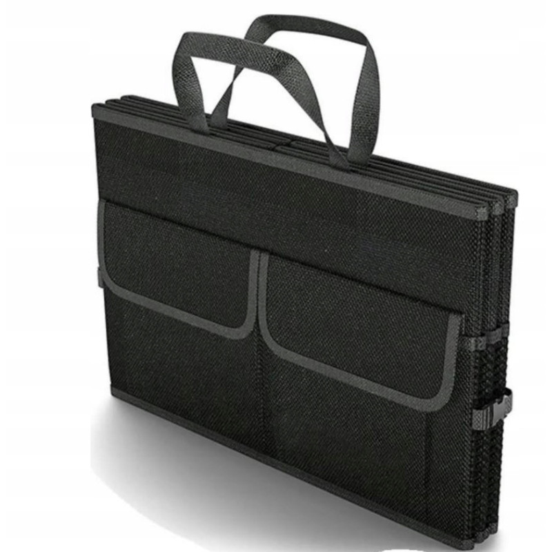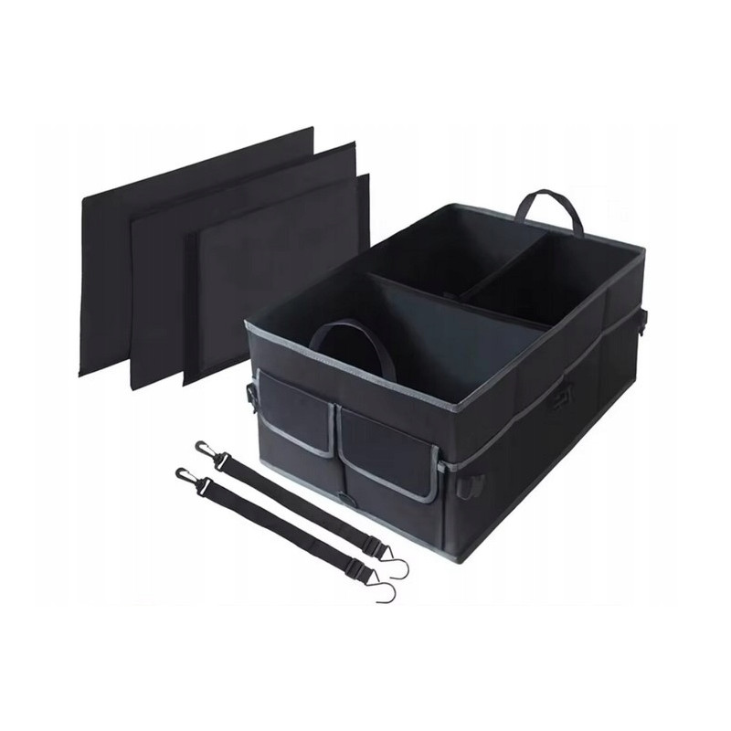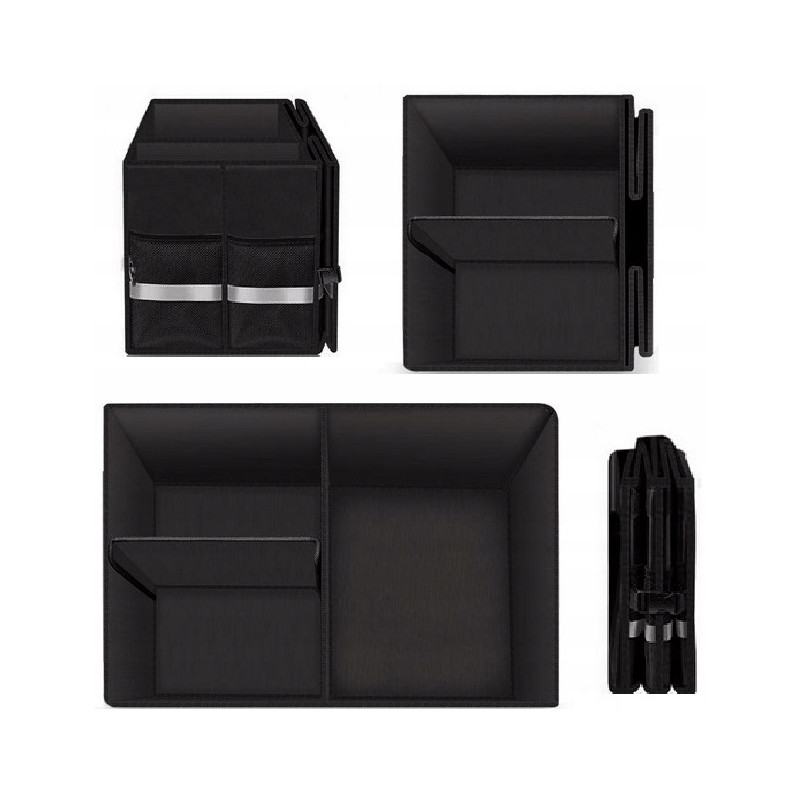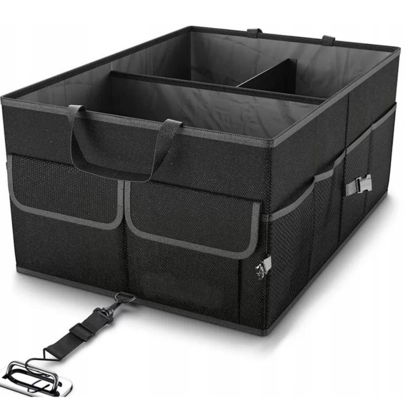 - Elegancki design: Klasyczny, czarny kolor i estetyczne wykończenie sprawiają, że organizer prezentuje się stylowo w każdym bagażniku.