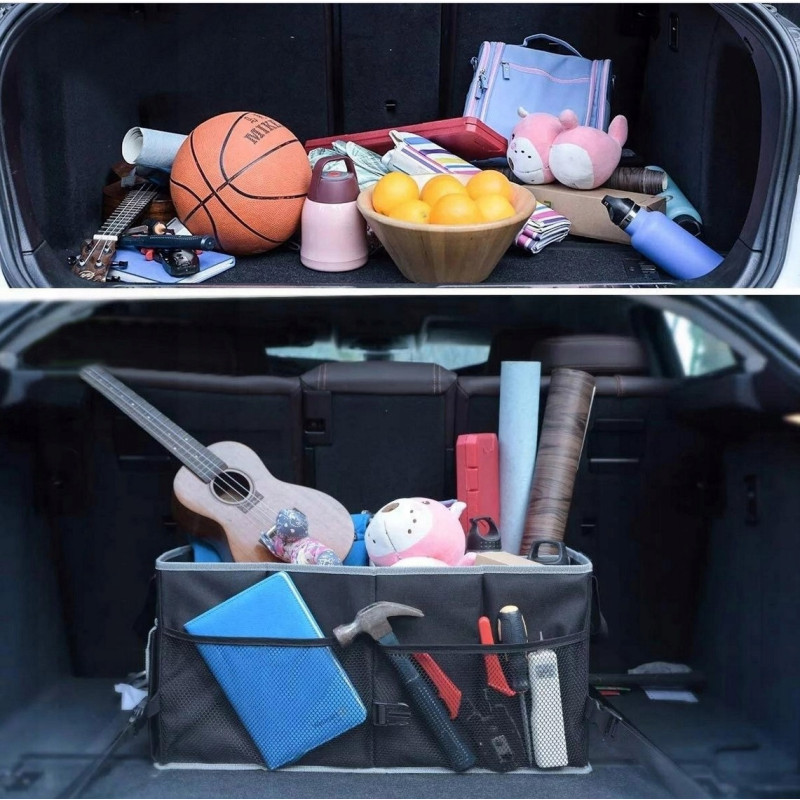 - Oszczędność miejsca: Organizer można łatwo złożyć i schować, gdy nie jest potrzebny, co pozwala na zaoszczędzenie przestrzeni w bagażniku.