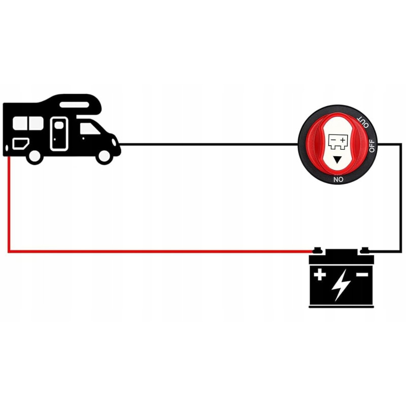 - Wyłącznik wpięty między akumulator a instalację pojazdu (np. kampera).