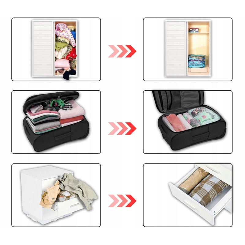 To idealne rozwiązanie dla osób, które chcą oszczędzać miejsce i utrzymać porządek w szafach, walizkach czy szufladach. Lekka, kompaktowa i niezwykle wydajna – niezastąpiona podczas podróży, przeprowadzek czy sezonowych porządków. Dzięki niej możesz łatwo zmniejszyć objętość przechowywanych przedmiotów i skutecznie zabezpieczyć je przed wilgocią, kurzem oraz owadami.